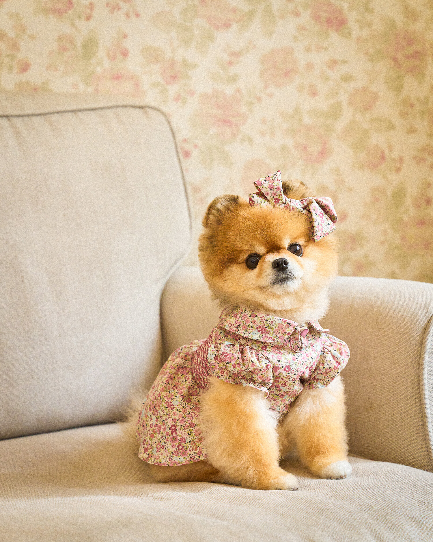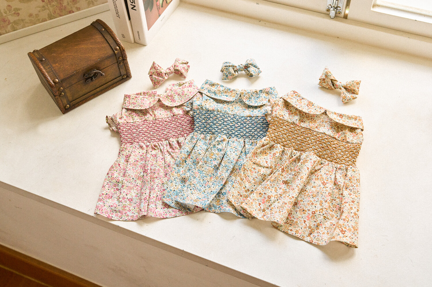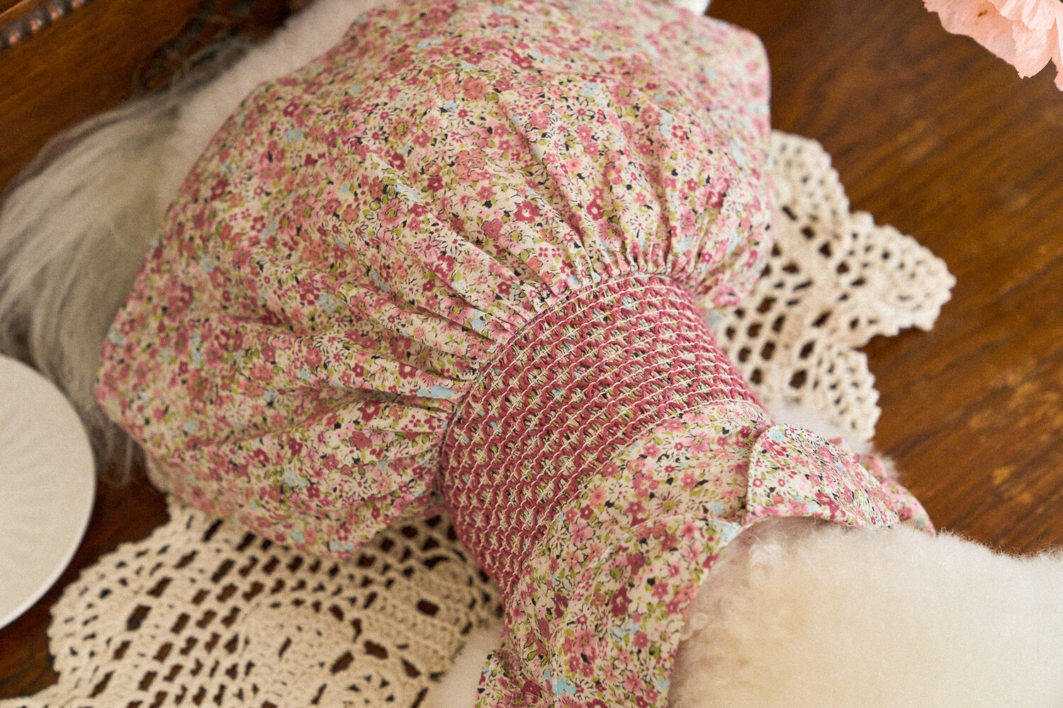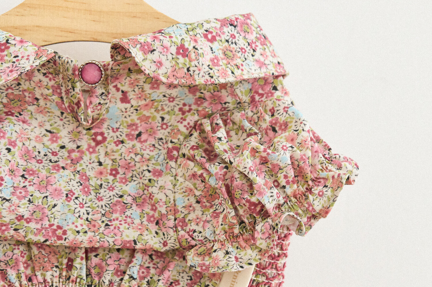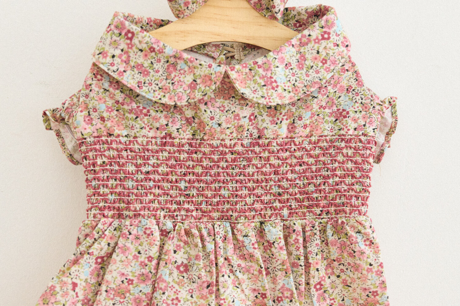 빈티지한 색감의 플라워 패턴에, 제품의 퀄리티를 높여주는 스모킹 자수 포인트를