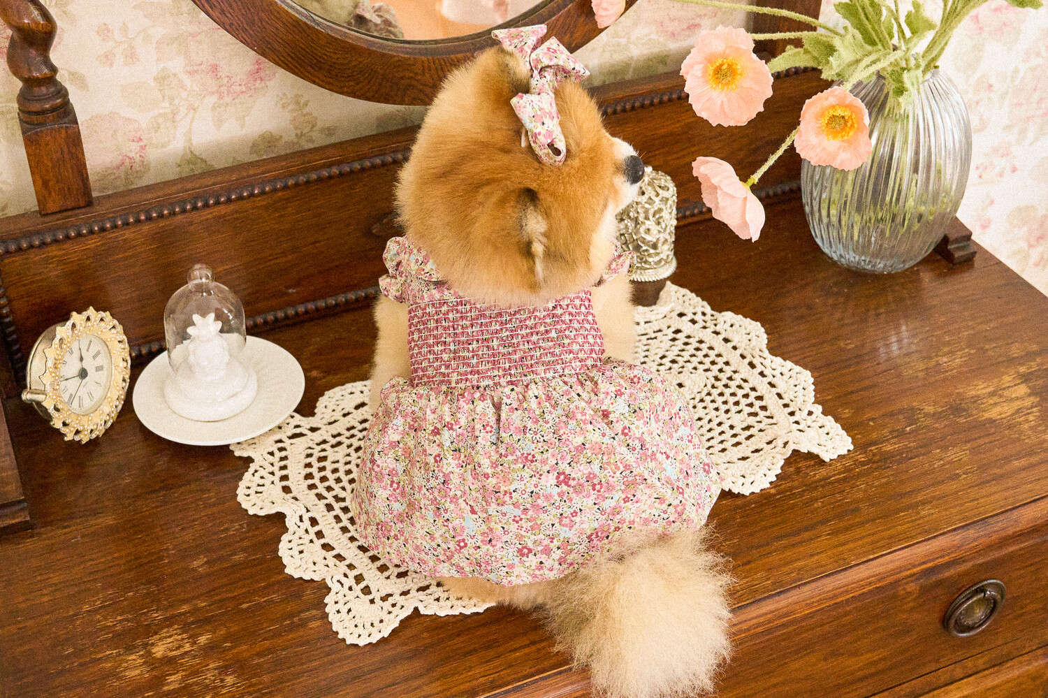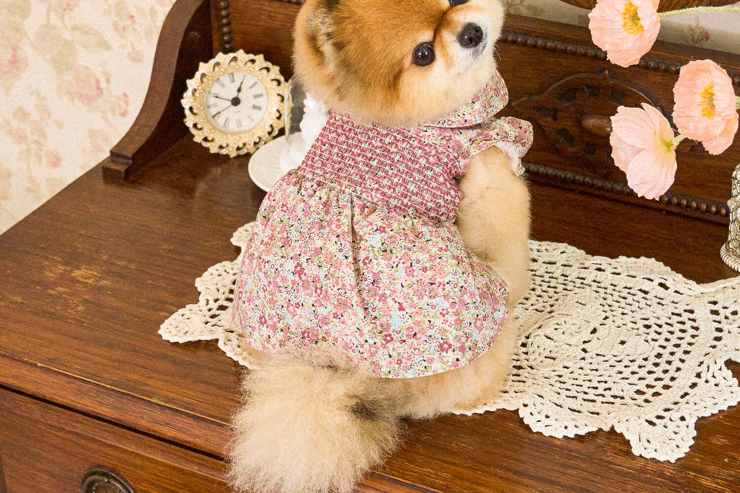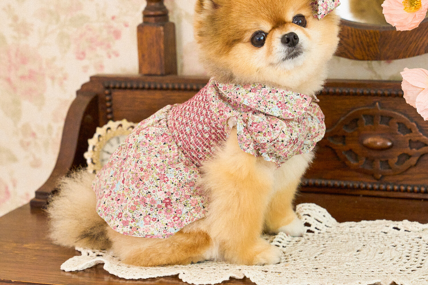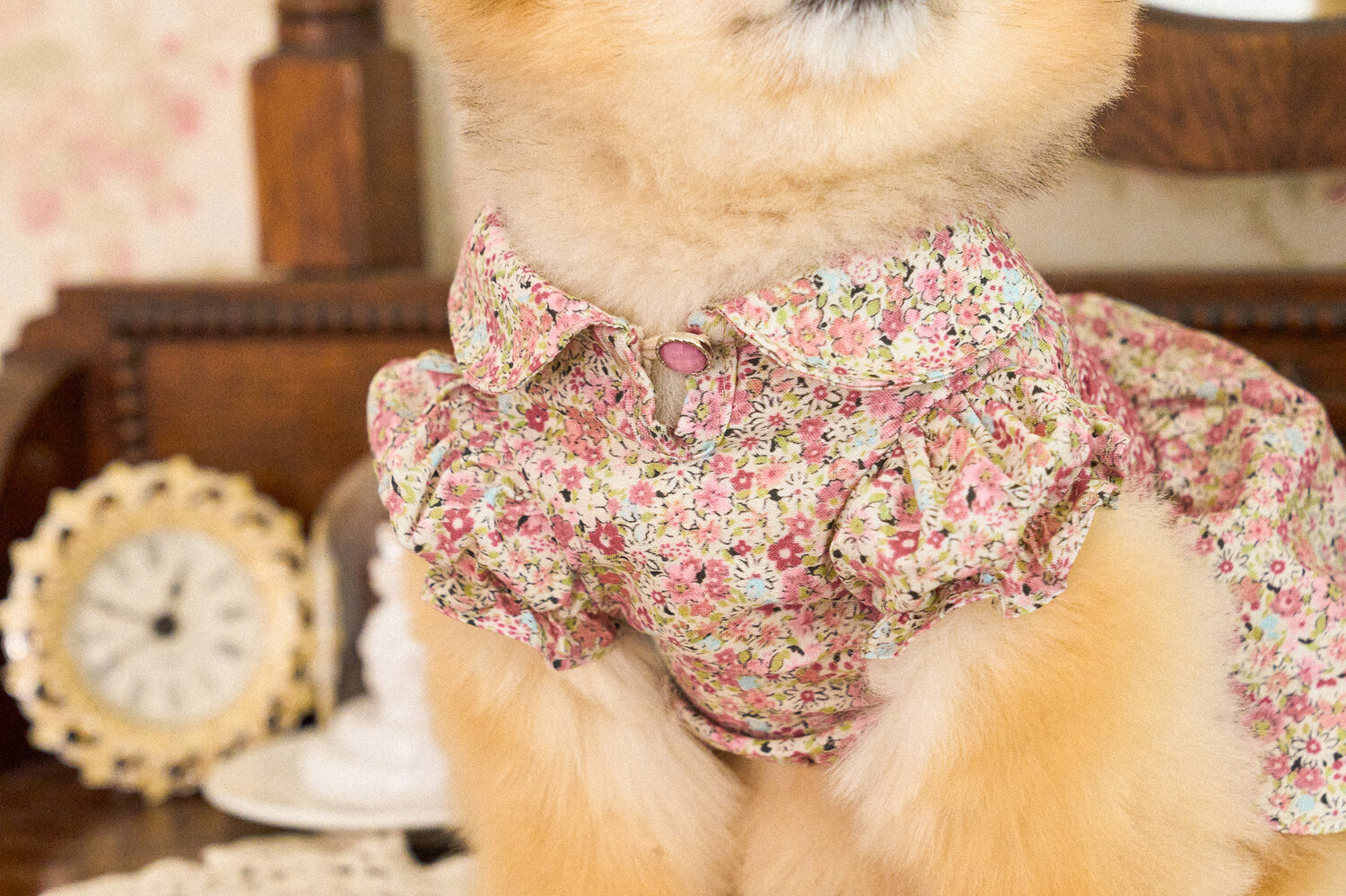 빈티지한 색감의 플라워 패턴에, 제품의 퀄리티를 높여주는 스모킹 자수 포인트를