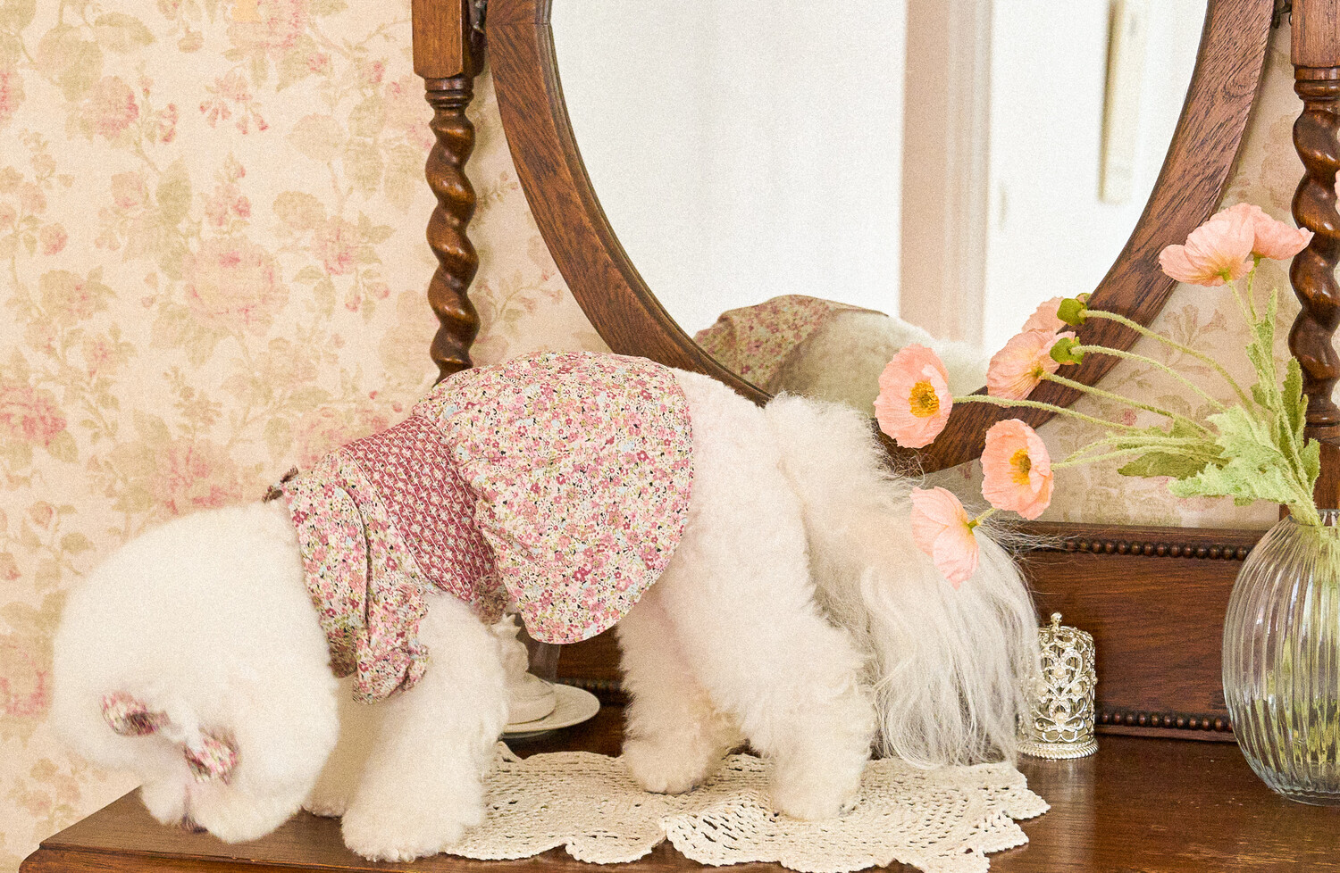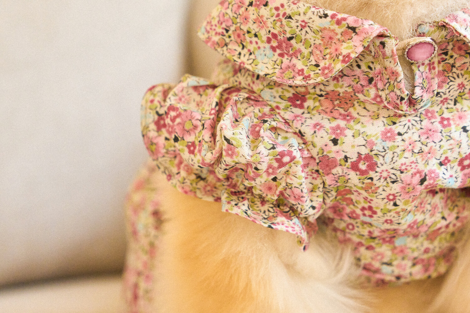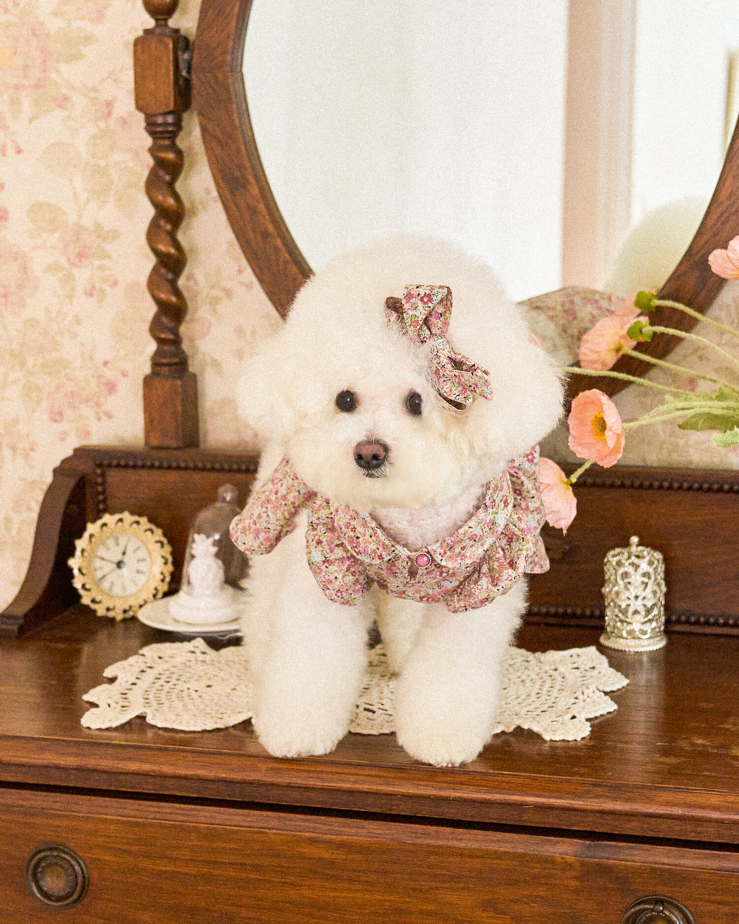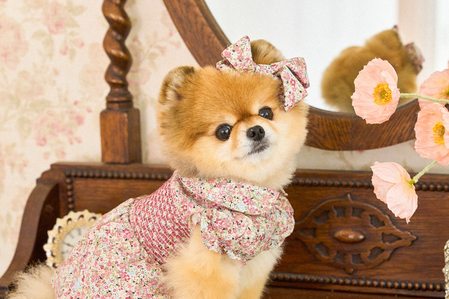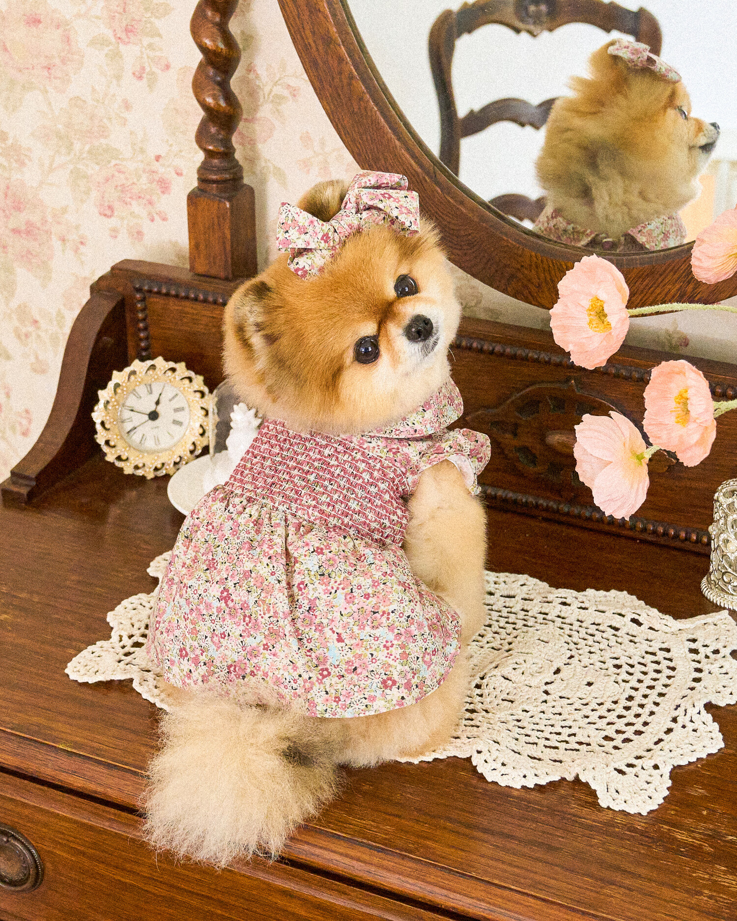 빈티지한 색감의 플라워 패턴에, 제품의 퀄리티를 높여주는 스모킹 자수 포인트를