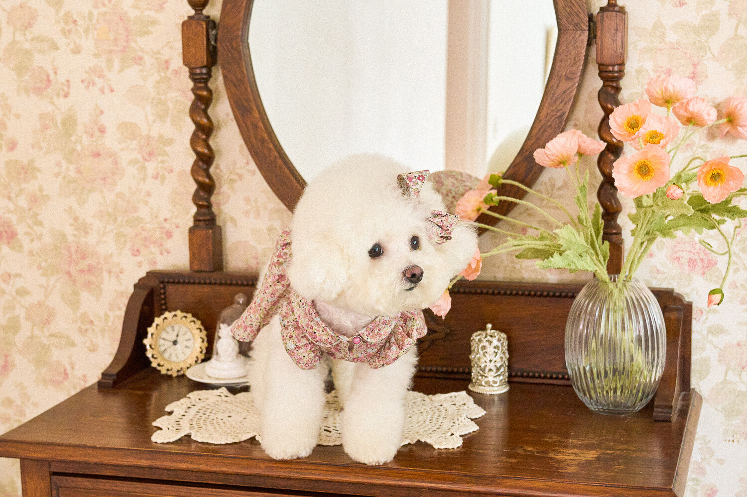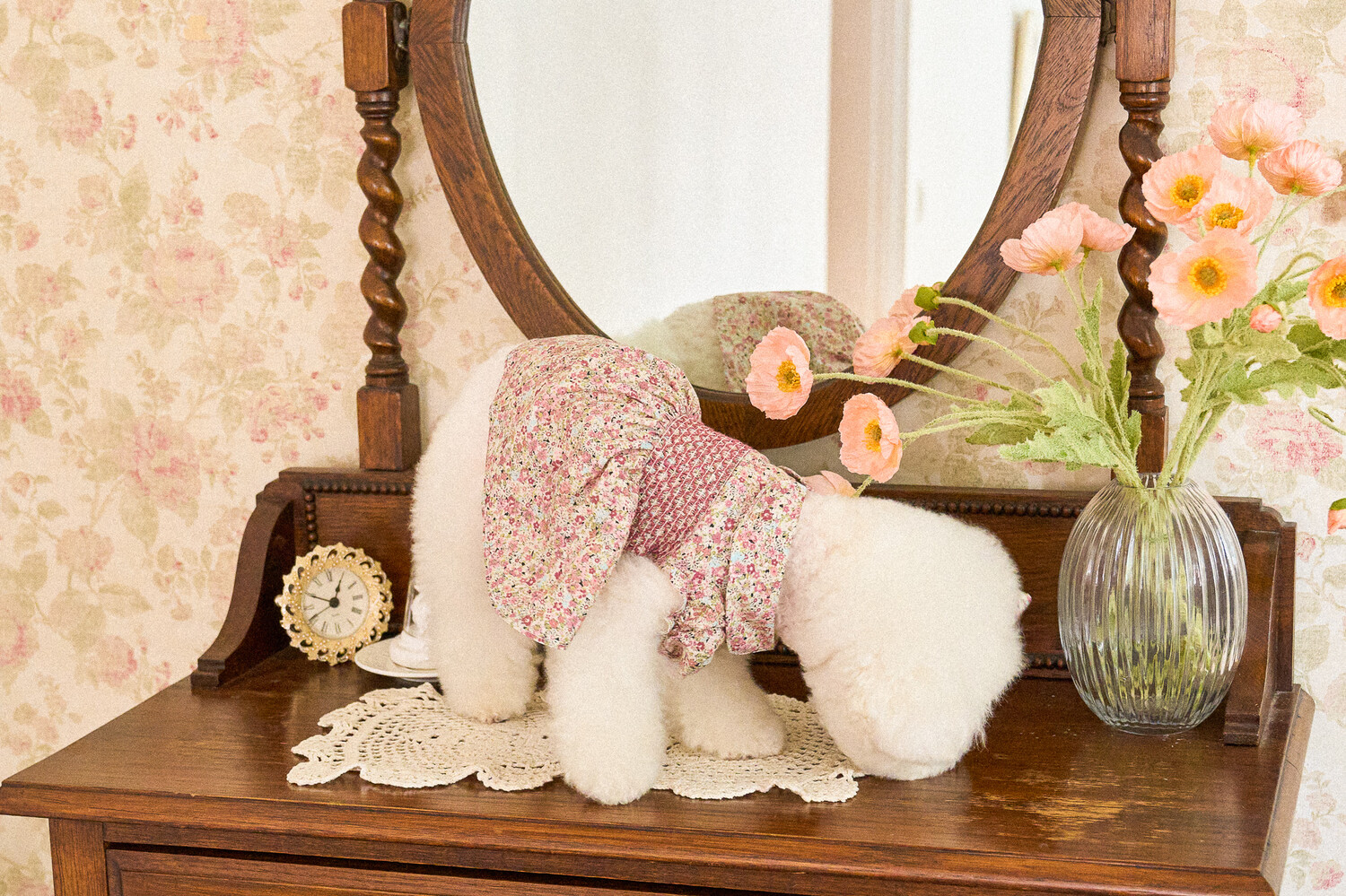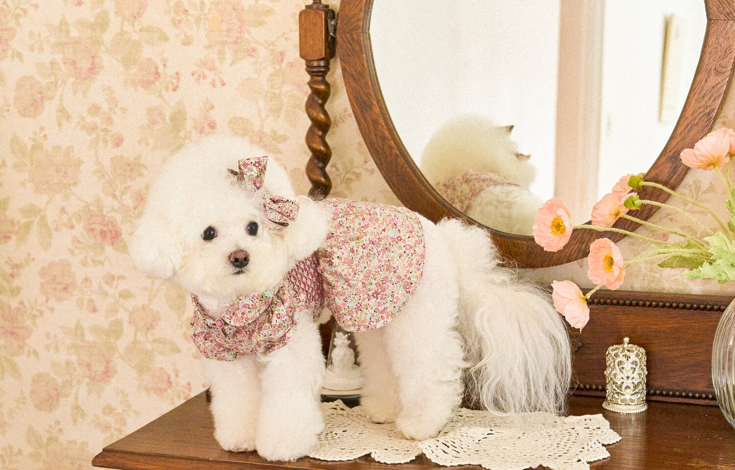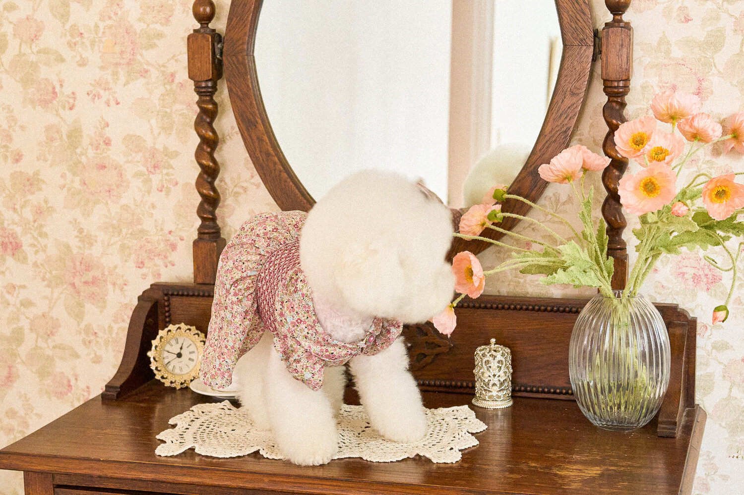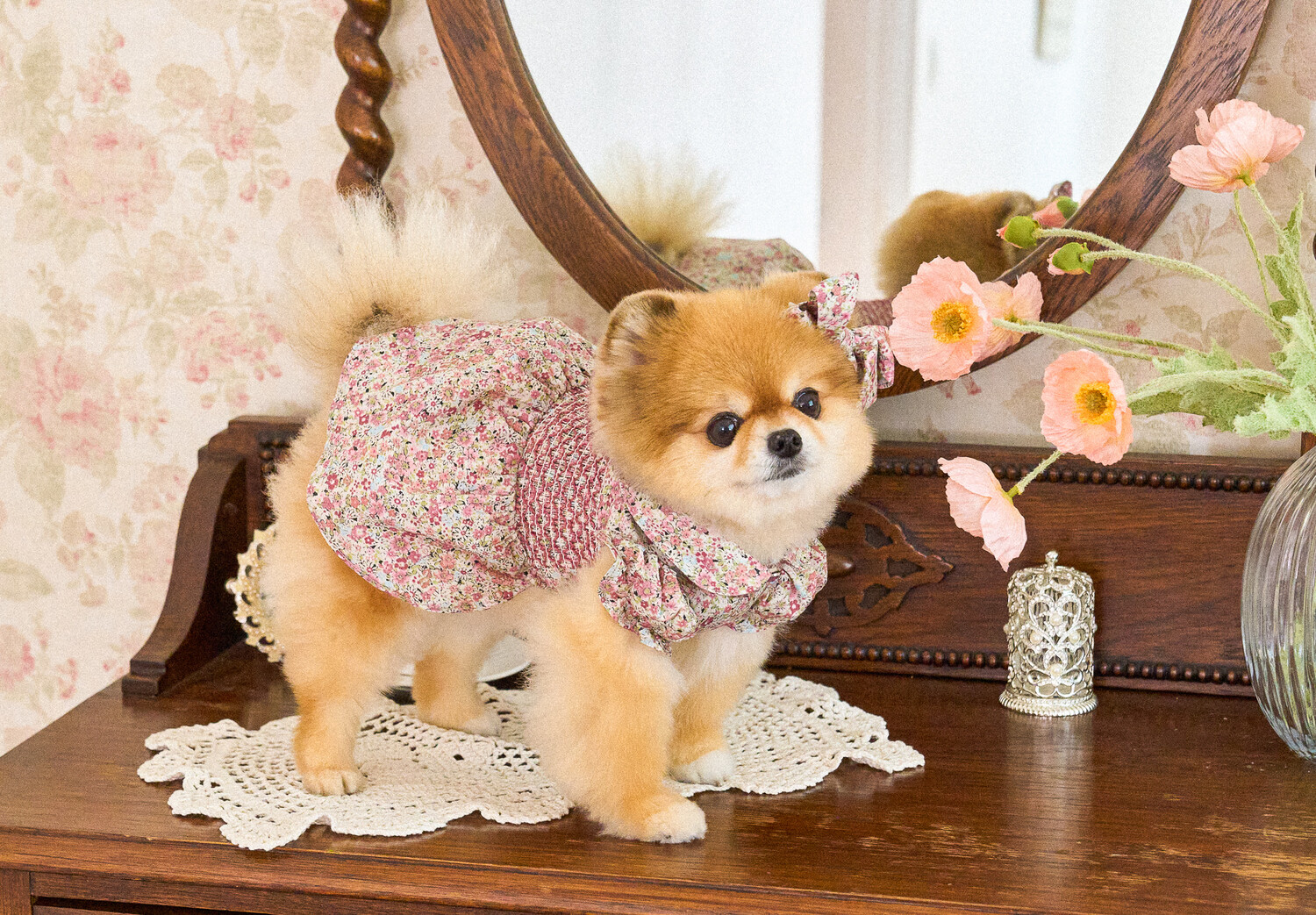 빈티지한 색감의 플라워 패턴에, 제품의 퀄리티를 높여주는 스모킹 자수 포인트를