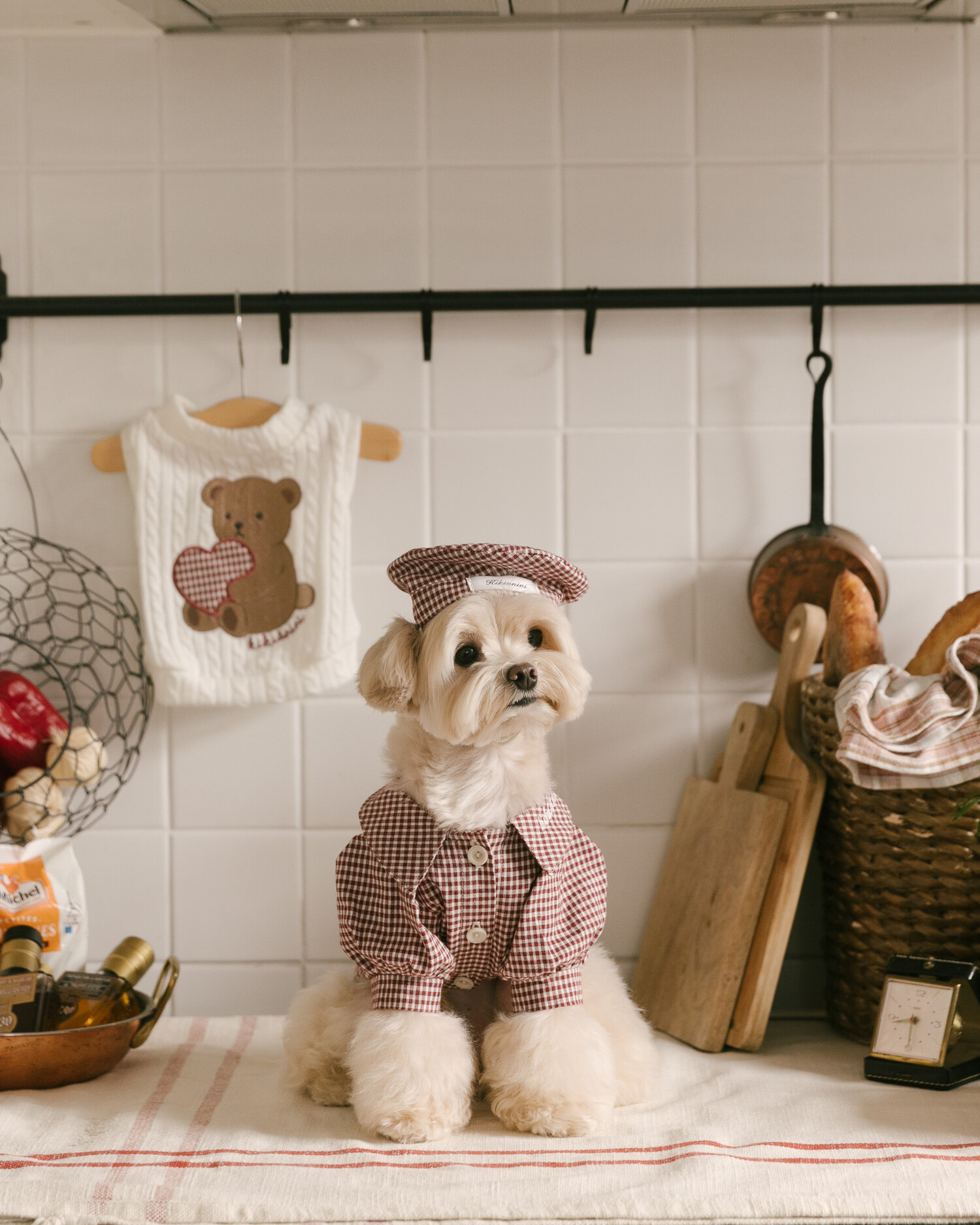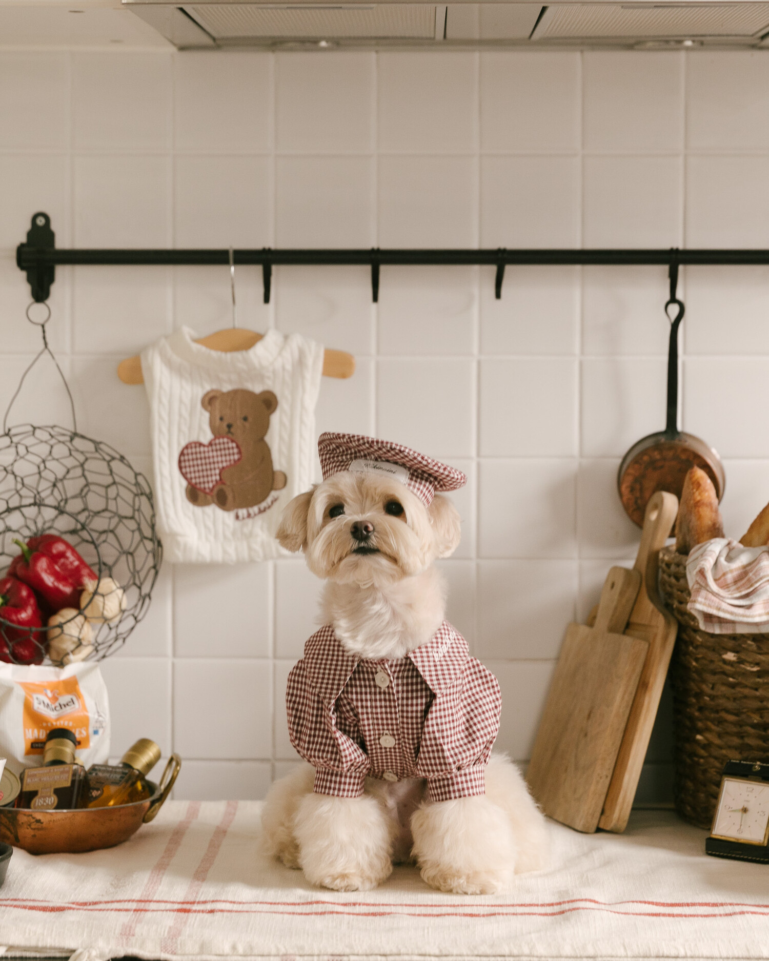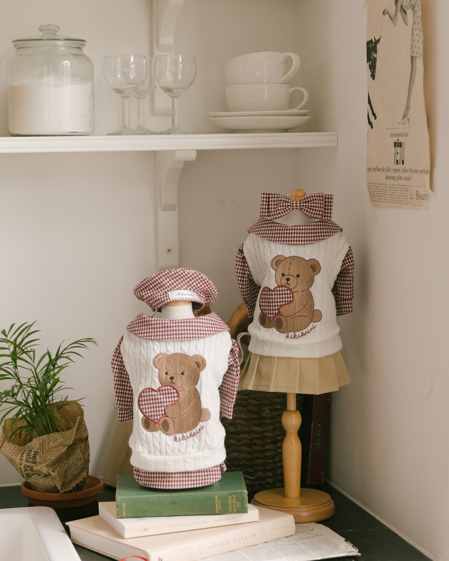포근한 니트 베스트에는 키키앤니니만의 따뜻한 감성을 담은 곰돌이 자수와 하트 아플리케가 더해져,