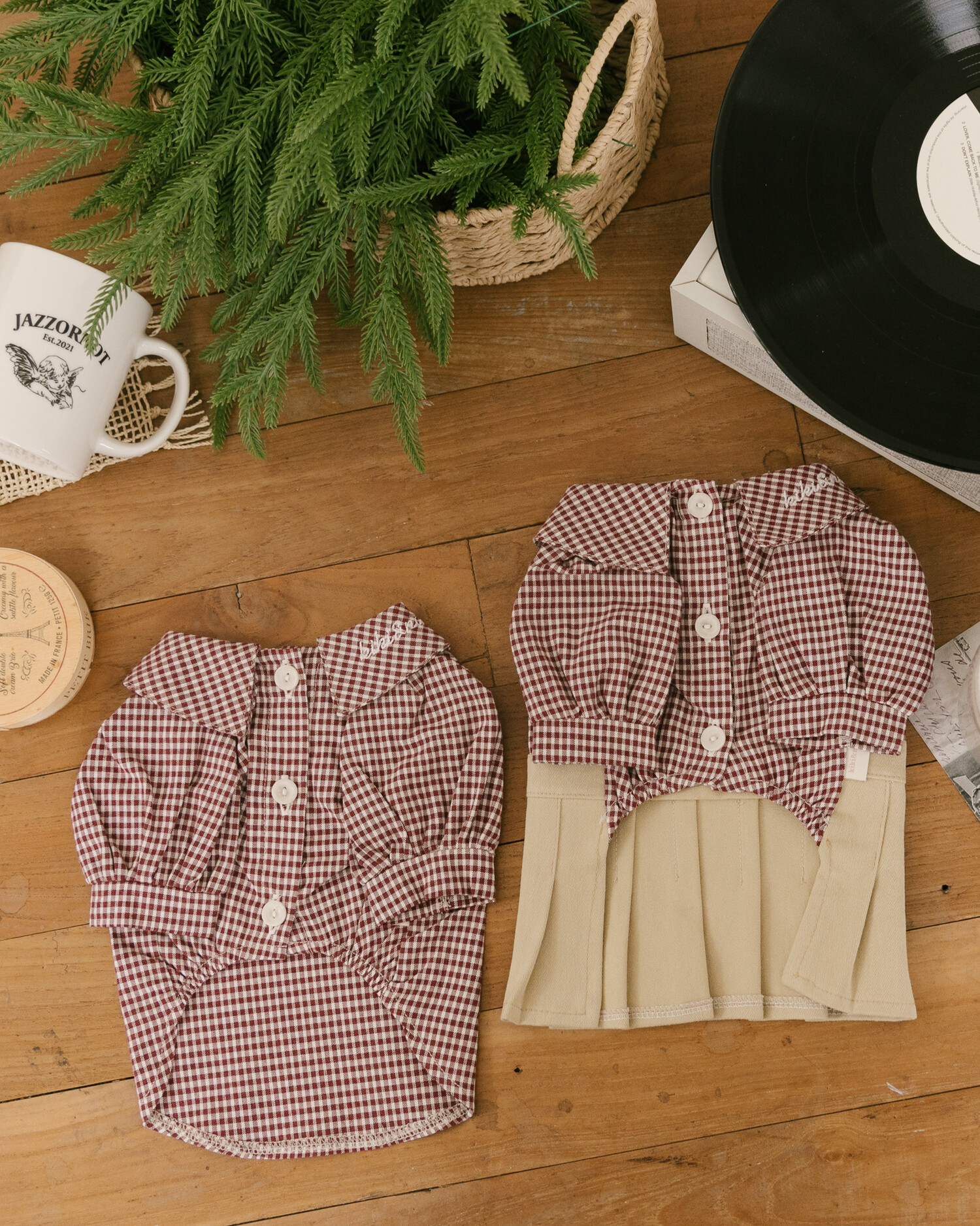 여기에 체크 셔츠와 플리츠 원피스를 매치하면 마치 스쿨룩을 떠올리게 하는 단정하면서도 사랑스러운 분위기가 완성되죠♥️