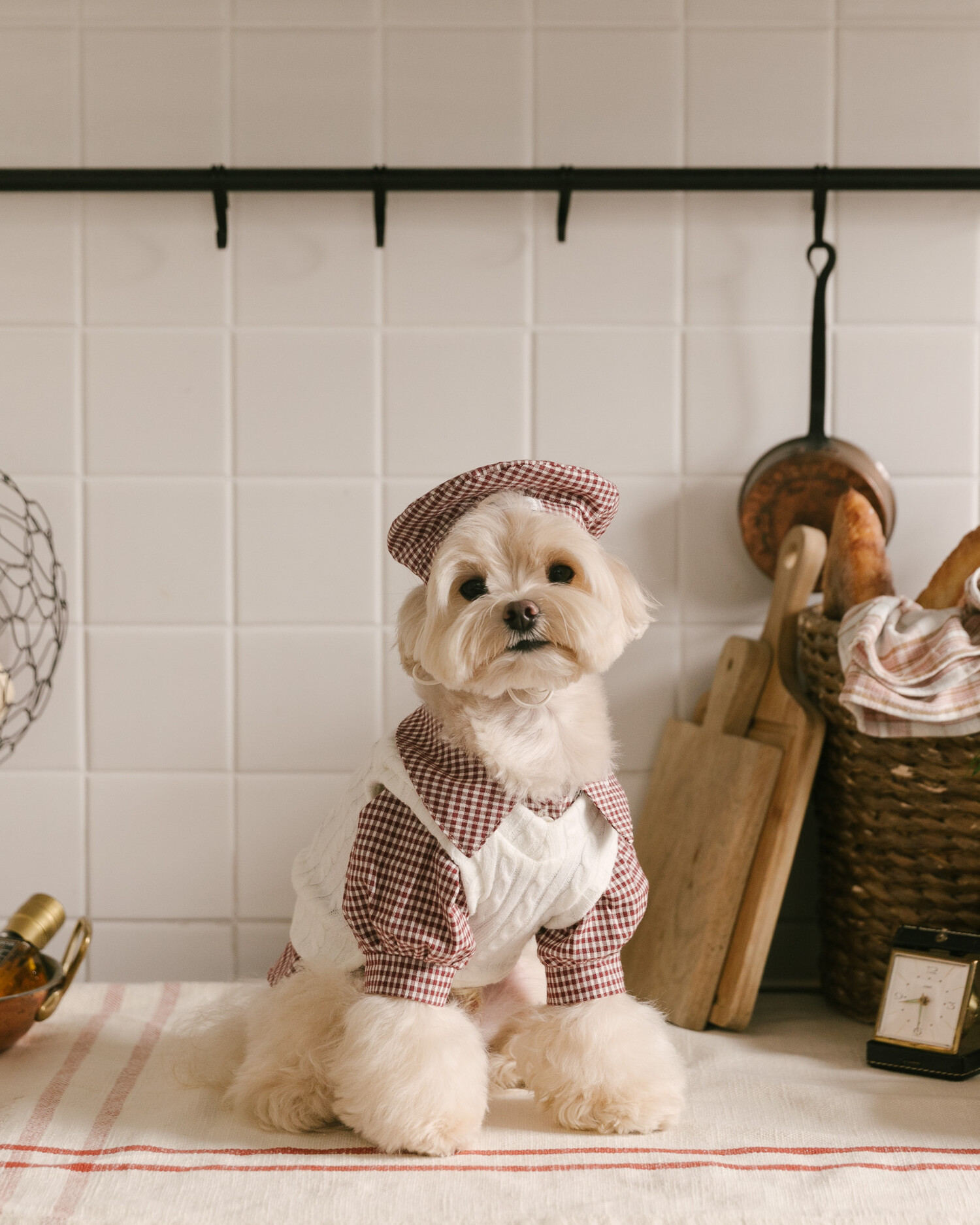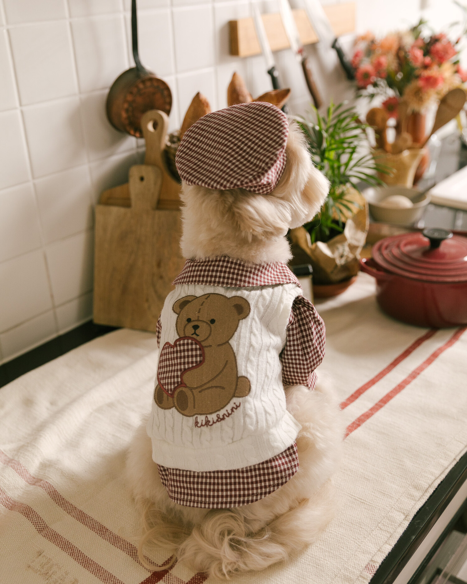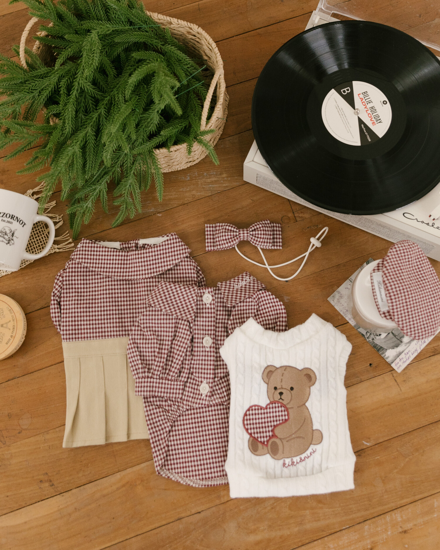 브라우니 니트 베스트(화이트) + 브라우니 클래식 체크 셔츠 (버건디)
