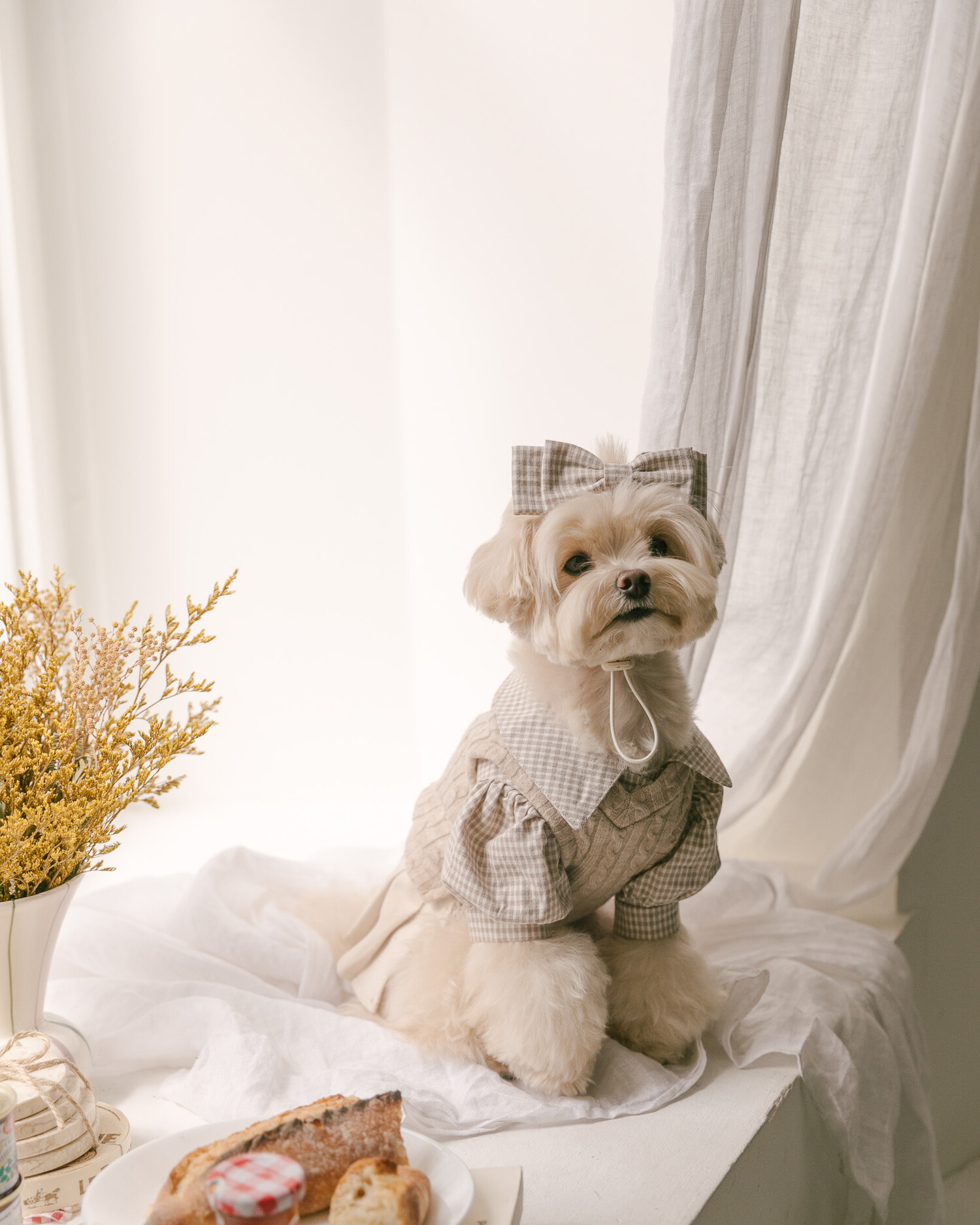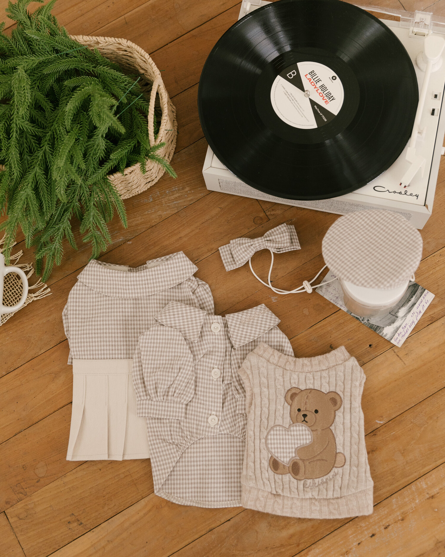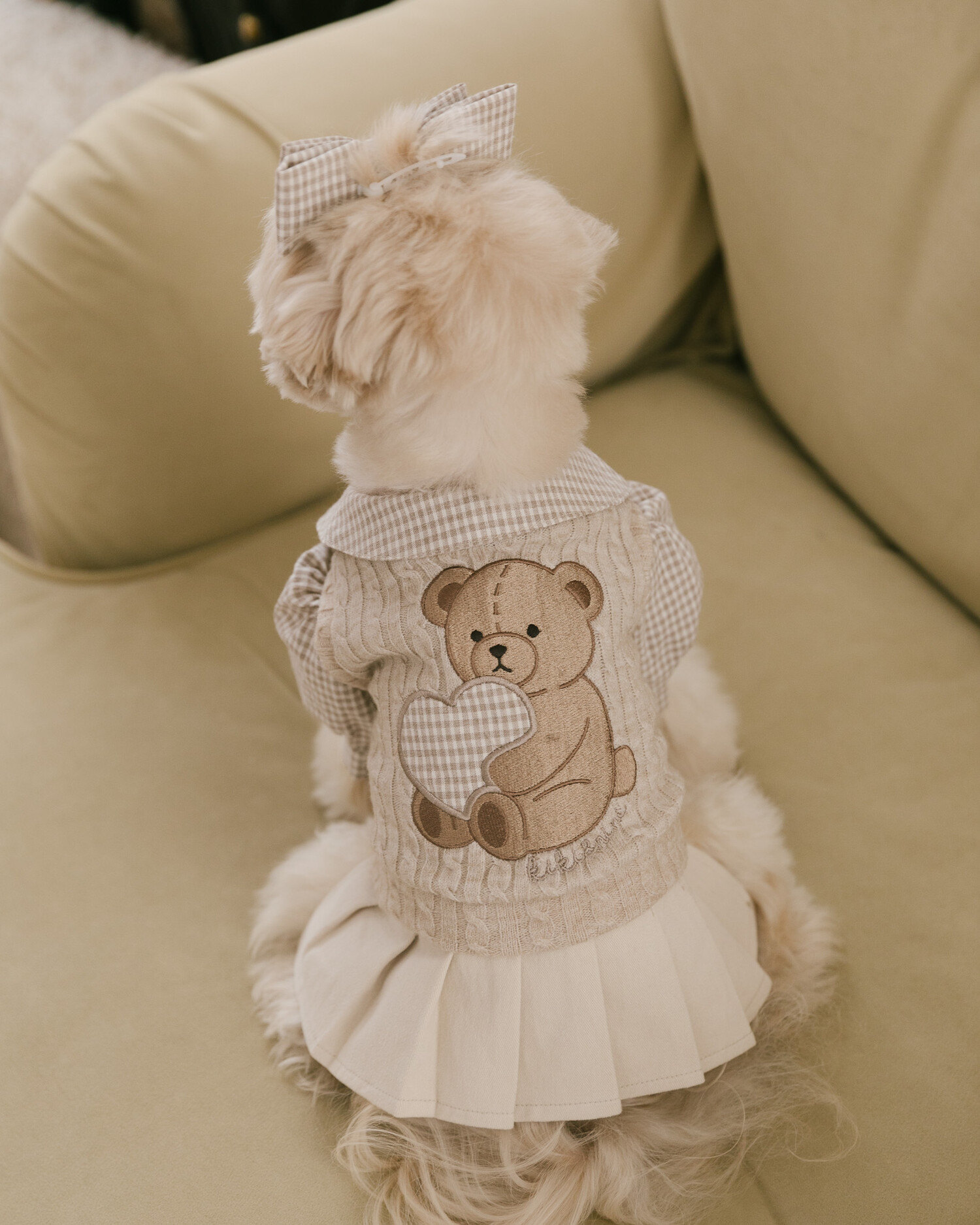 브라우니 니트 베스트(베이지) + 브라우니 클래식 체크 원피스 (베이지)