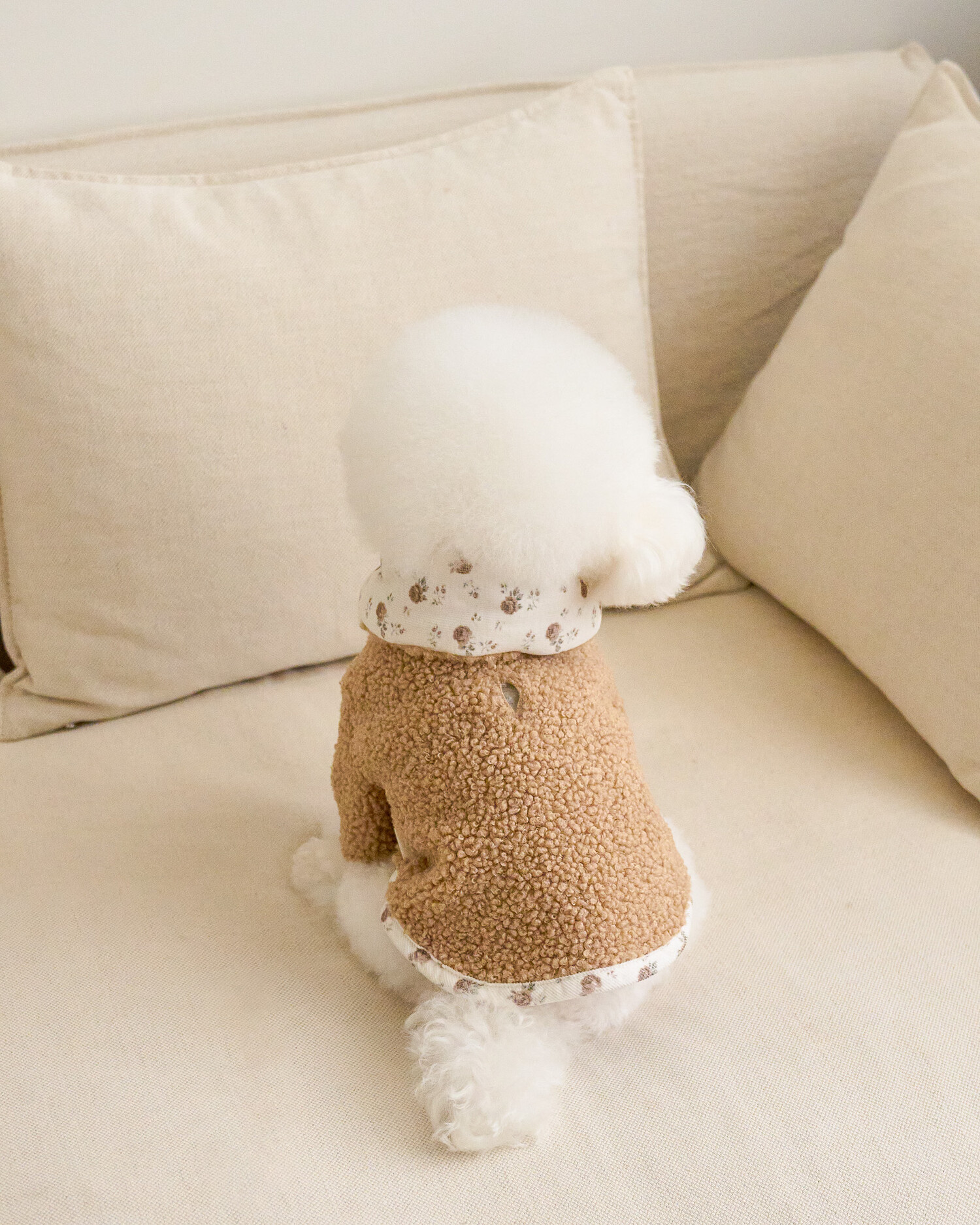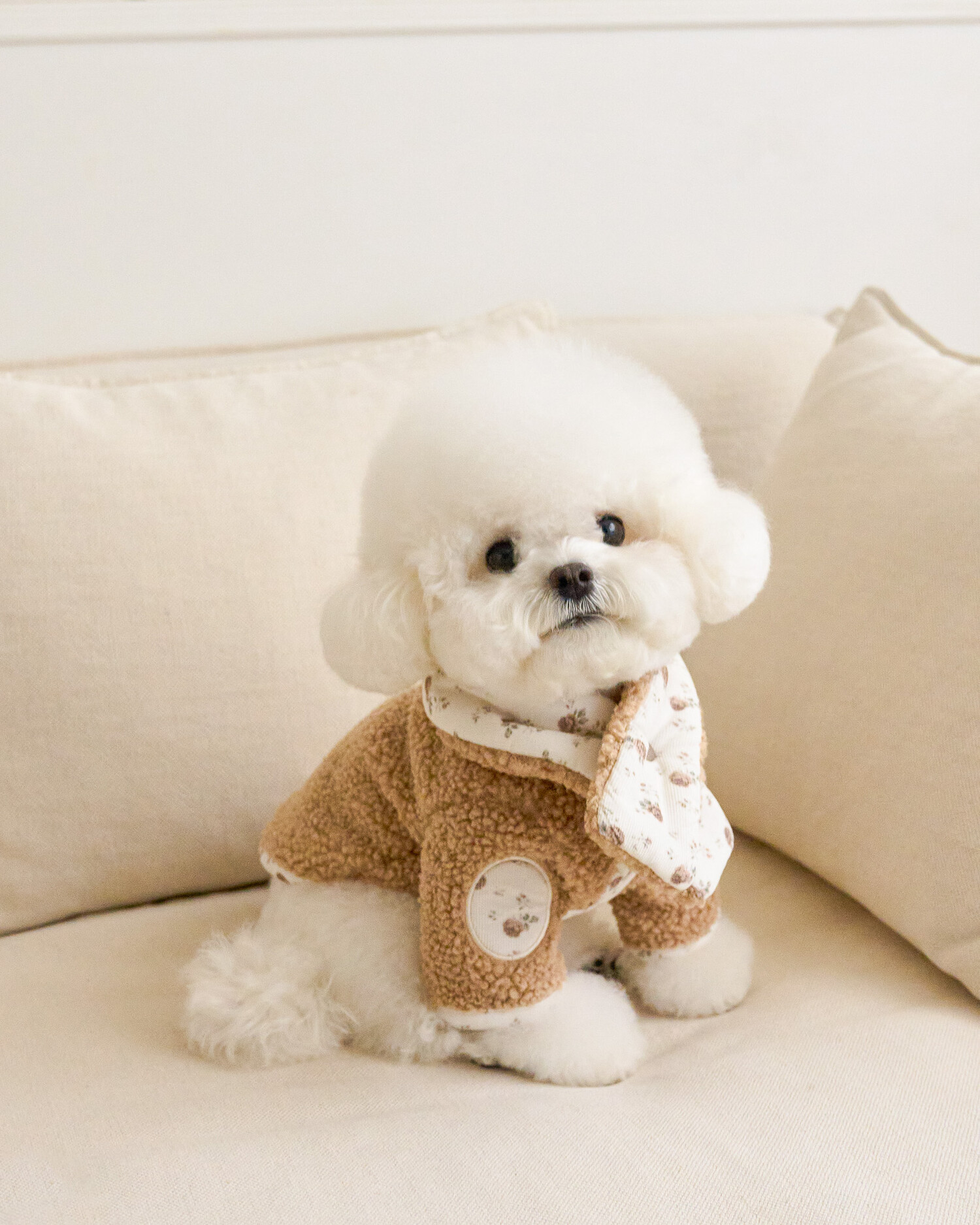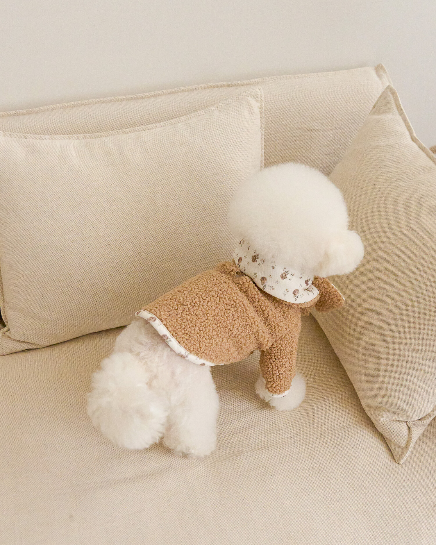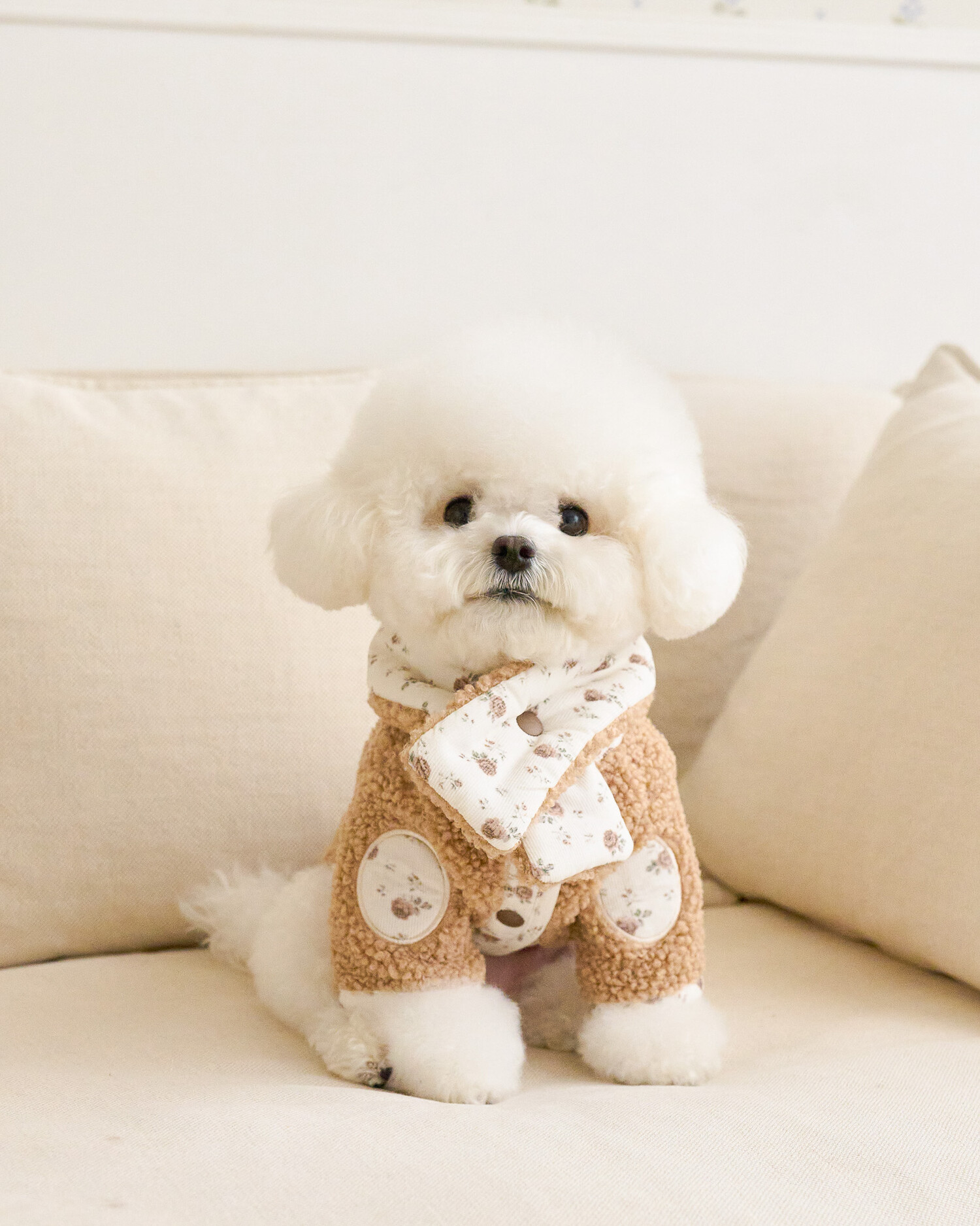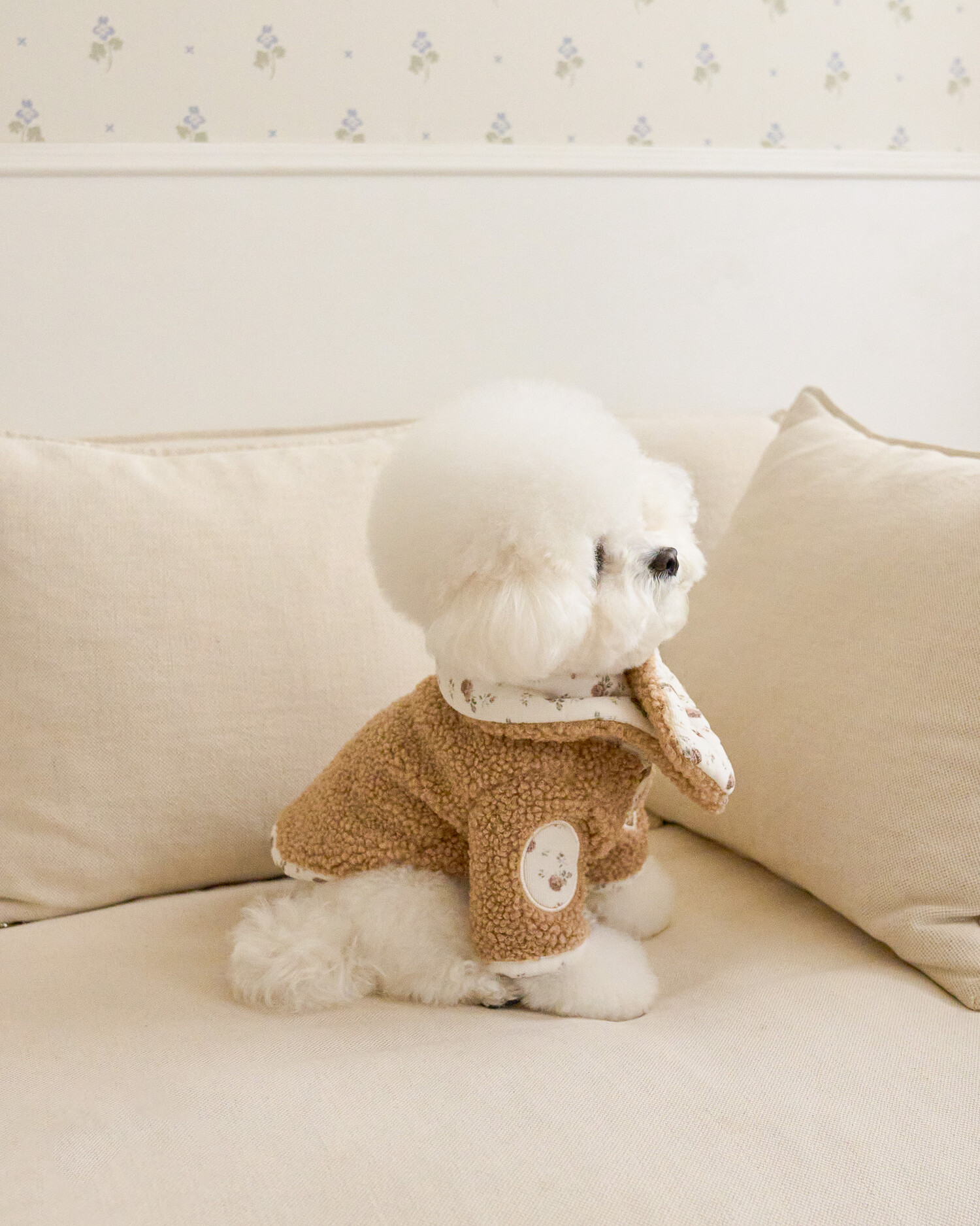 포근한 코듀로이 플라워 패턴으로 소매 패치 자수와 전체적인 배색 포인트를 주어,