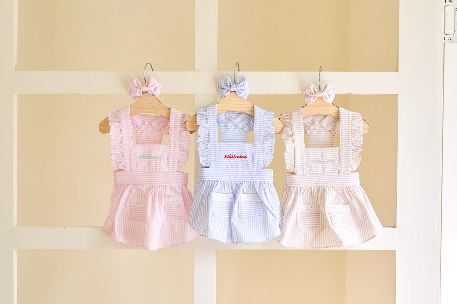 봄&가을 시즌마다 꼭 빼놓지 않고 선보이는 블라우스&오버롤 셋업♥ 정말 오랜만에 셋업이 아닌, 단품으로도 포인트가 되는 오버롤 제품 준비했습니다♥ 여름 시즌의 청량한 무드가 느껴지는 스트라이프 패턴과 통통 튀는 색감배색이 돋보이는 로고 자수, 원피스에 귀여움을 업 시켜주는 주머니 디테일까지! 군데군데 귀여운 포인트가 자리 잡은 Santorini Overall OPS 40수 코튼 소재로 제작하여, 한여름까지 가볍고 쾌적하게 입히실수 있으며, 하나만 입어도 포인트가 되고, 또 워낙 입히기 편한 제품이라- 여름철 손이 자주 갈 아이템입니다