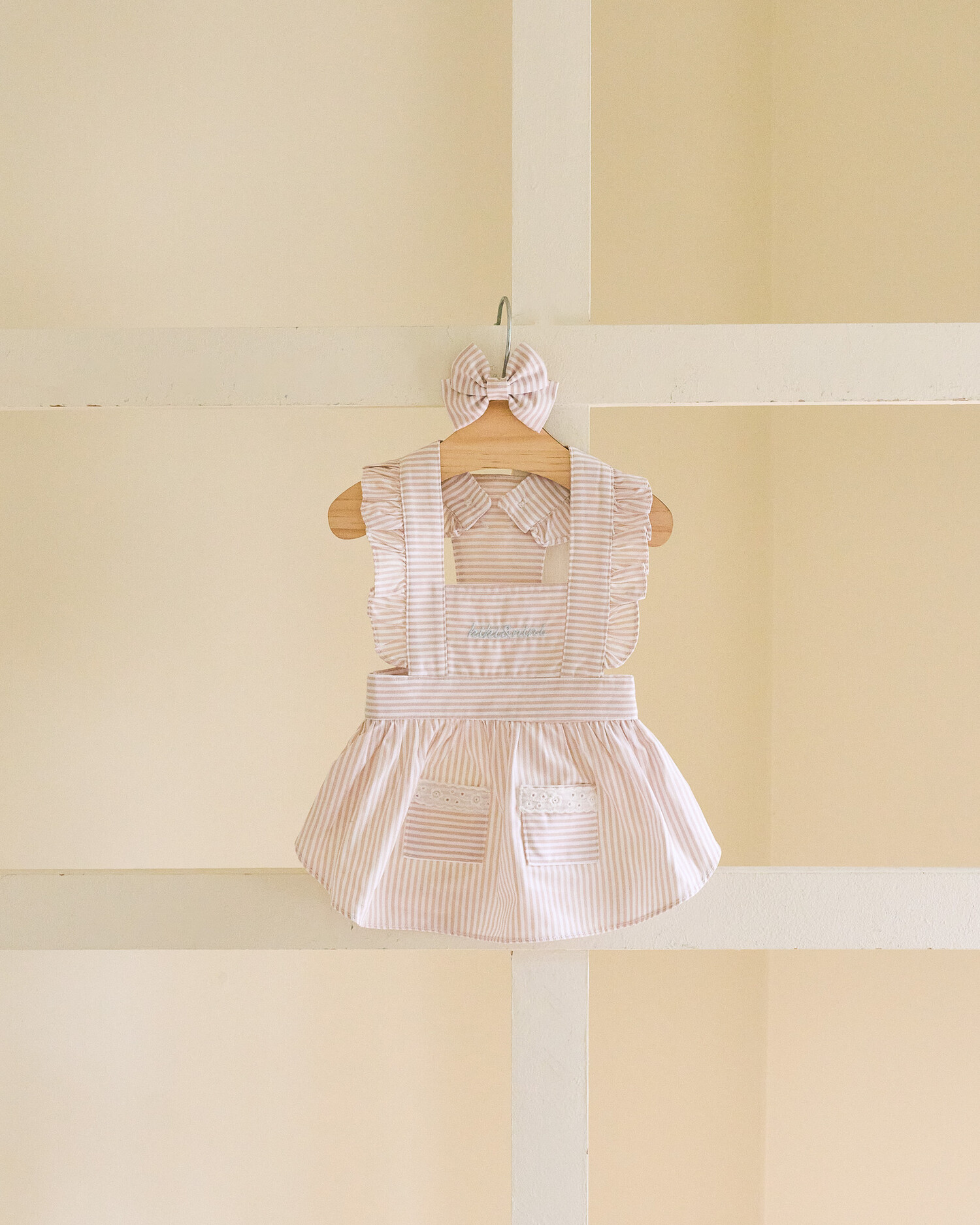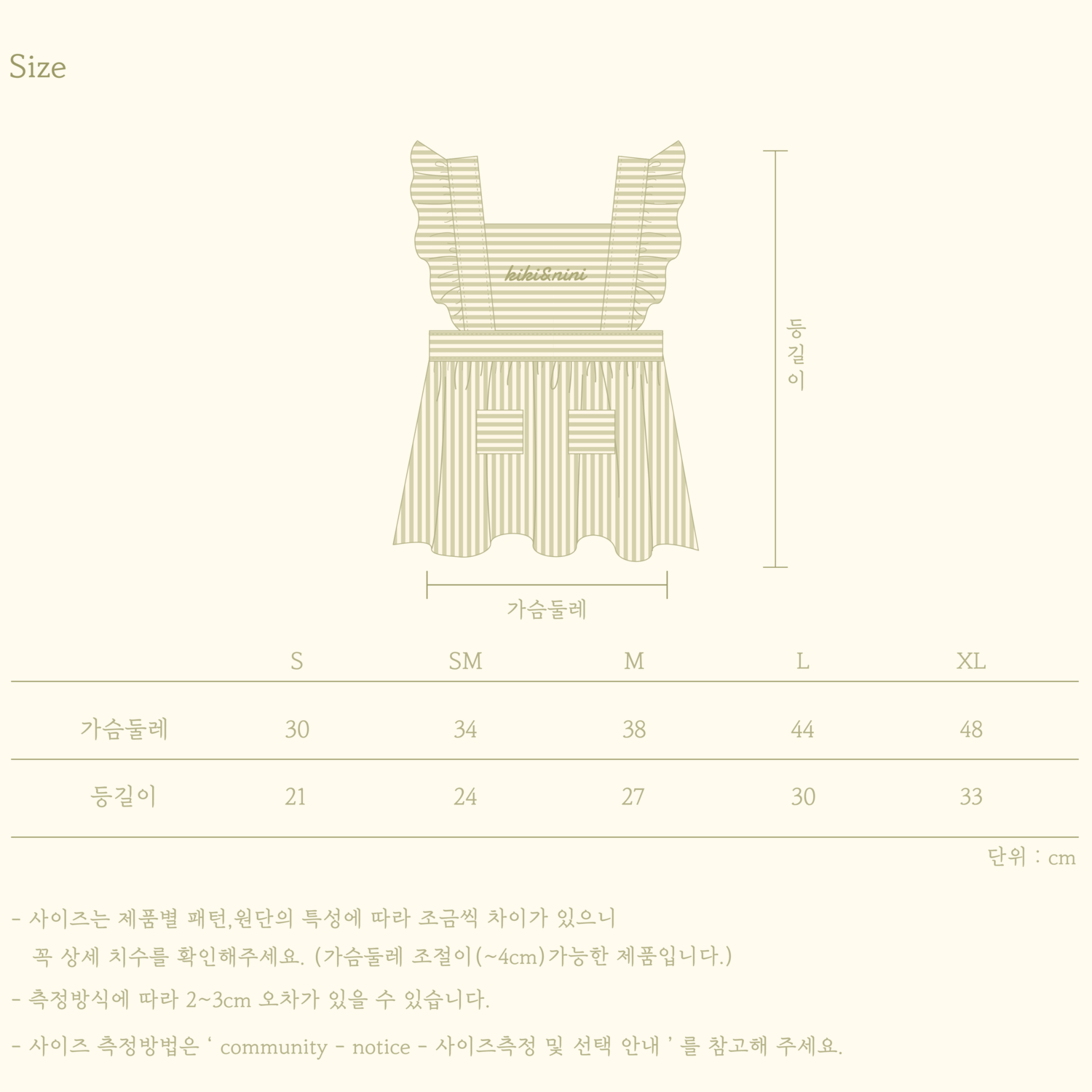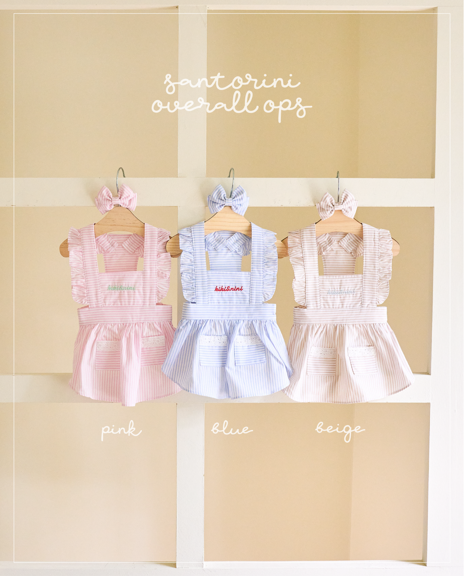 봄&가을 시즌마다 꼭 빼놓지 않고 선보이는 블라우스&오버롤 셋업♥ 정말 오랜만에 셋업이 아닌, 단품으로도 포인트가 되는 오버롤 제품 준비했습니다♥ 여름 시즌의 청량한 무드가 느껴지는 스트라이프 패턴과 통통 튀는 색감배색이 돋보이는 로고 자수, 원피스에 귀여움을 업 시켜주는 주머니 디테일까지! 군데군데 귀여운 포인트가 자리 잡은 Santorini Overall OPS 40수 코튼 소재로 제작하여, 한여름까지 가볍고 쾌적하게 입히실수 있으며, 하나만 입어도 포인트가 되고, 또 워낙 입히기 편한 제품이라- 여름철 손이 자주 갈 아이템입니다