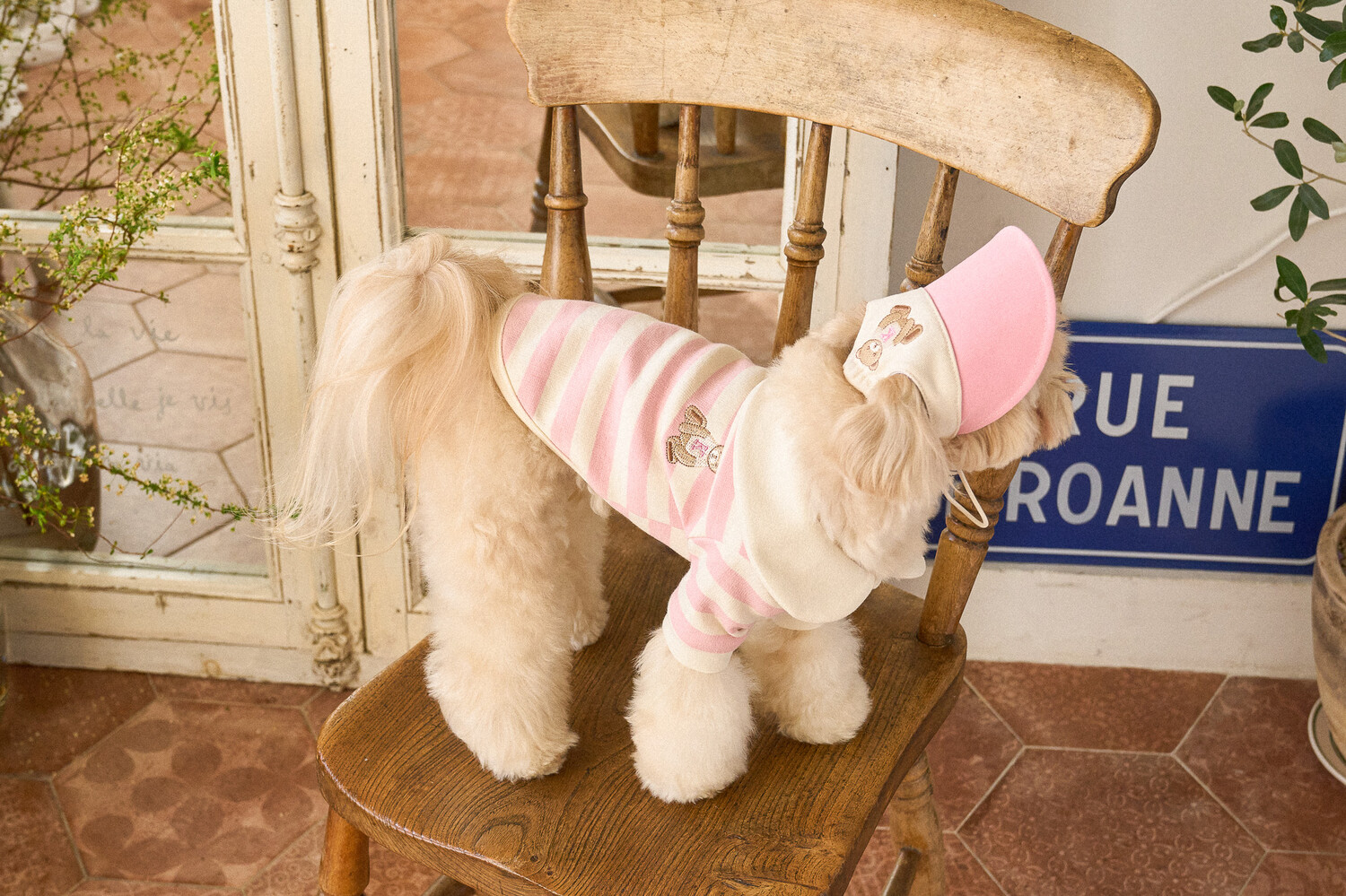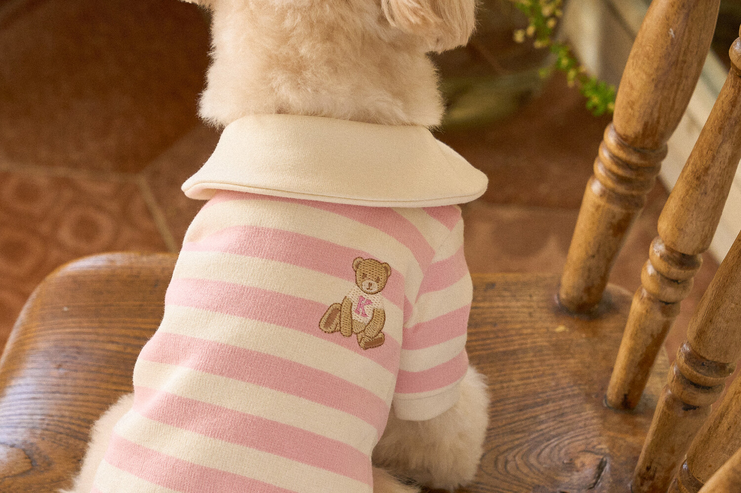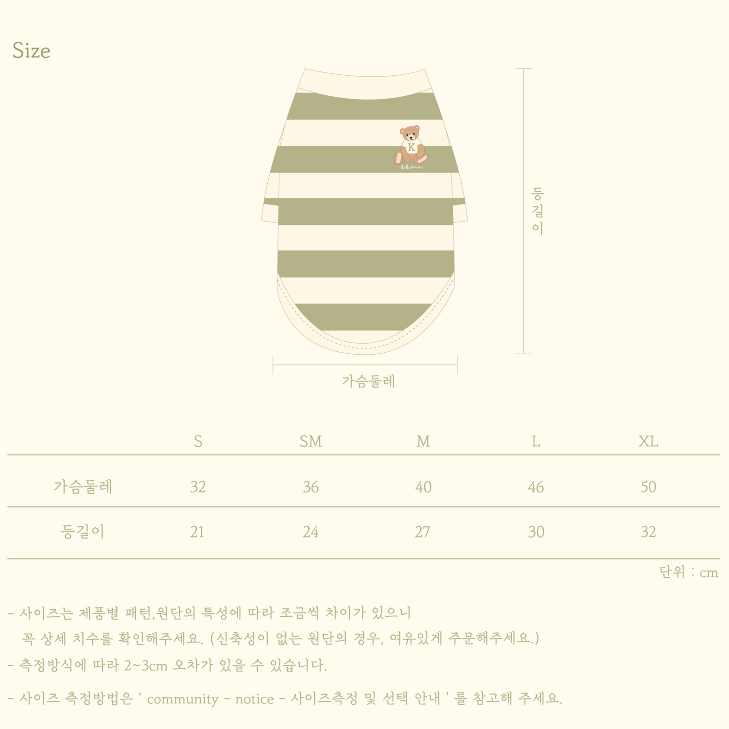 완벽한 ‘꾸안꾸’룩의 정석! 키키앤니니의 코지한 무드가 담긴, ’고미 단가라 티셔츠‘를 소개합니다 유행을 타지 않고 즐길 수 있는 스트라이프 패턴 위에, 귀여움이 마구마구 상승하는 키키앤니니 시그니처 곰돌이 자수로 포인트를 주었으며, 생크림 한 방울 떨어트린 듯 부드러운 파스텔 색감의 핑크/베이지 두 컬러로 만나보실 수 있습니다 매 시즌 휘뚜루마뚜루 꺼내 입기 좋은 데일리템인 만큼! 원단에 특히 신경을 많이 썼는데요! 적당한 두께감의 탄탄하면서 부드러운 코튼 소재로, 늘어짐 및 변형이 적어 오랫동안 높은 퀄리티로 함께하시기 좋으실 거에요♥ 패턴 또한, 단순해 보이지만, 입었을 때 가장 예쁘게 떨어지는 핏 감을 찾기 위해 여러 번의 샘플링 작업을 걸쳐 나온 패턴이라 입혀보시면 더욱 만족하실 것 같습니다! 타입은, 티셔츠&원피스 2타입으로 제작되어, 남매룩 또는 친구들과 댕플룩으로도 너무 추천드리는 제픔이며, 함께 출시된 ‘캡 모자’와 함께 하시면, 당장이라도 소풍 가야 할 것만 같은 봄 소풍룩이 완성된답니다♥