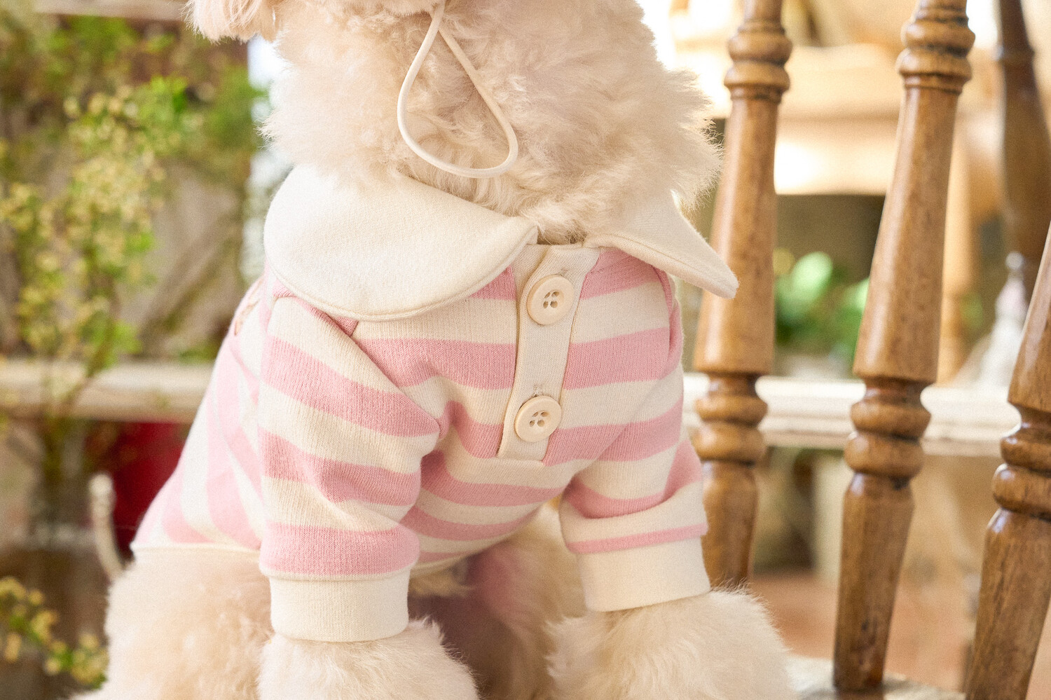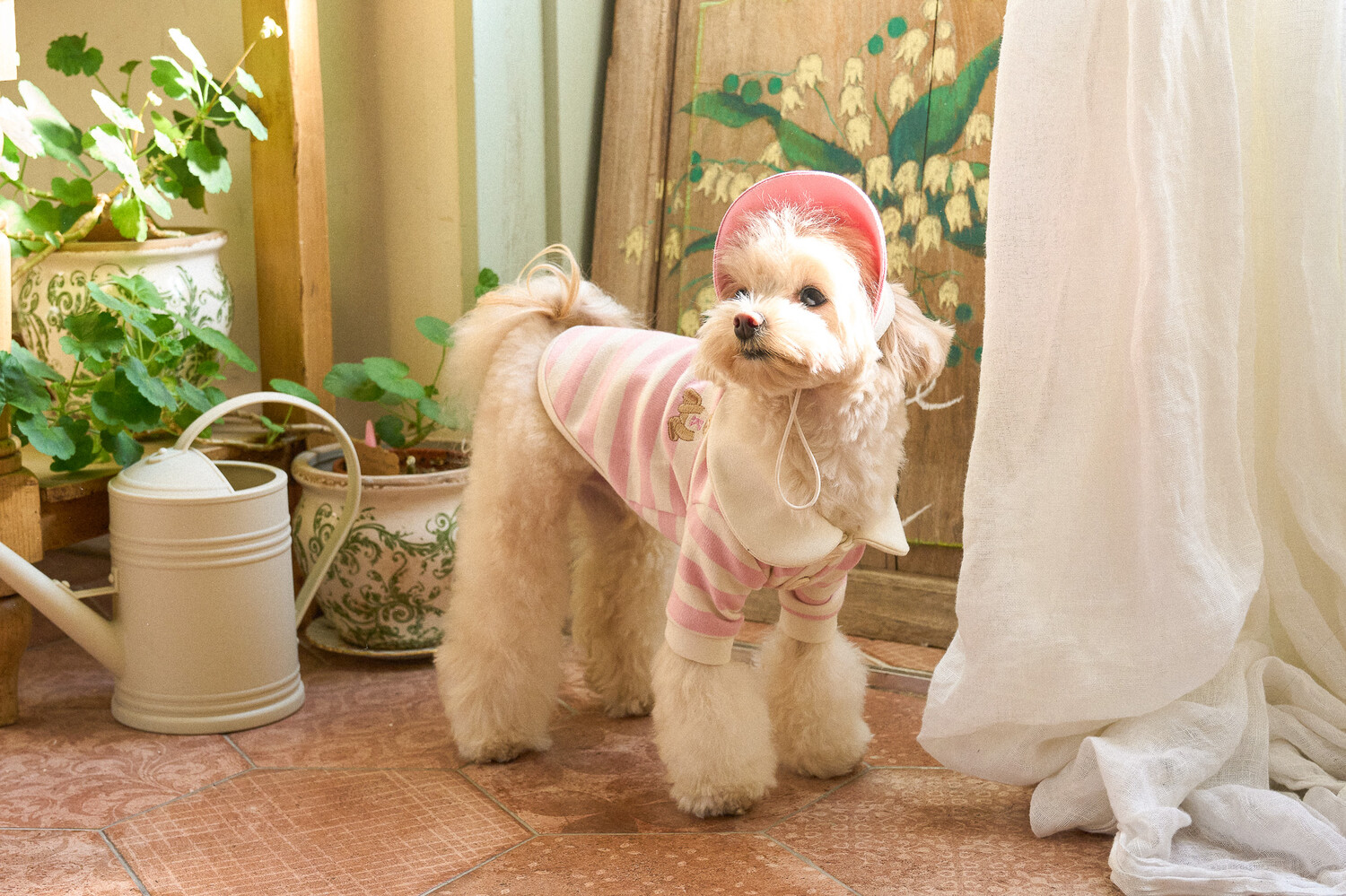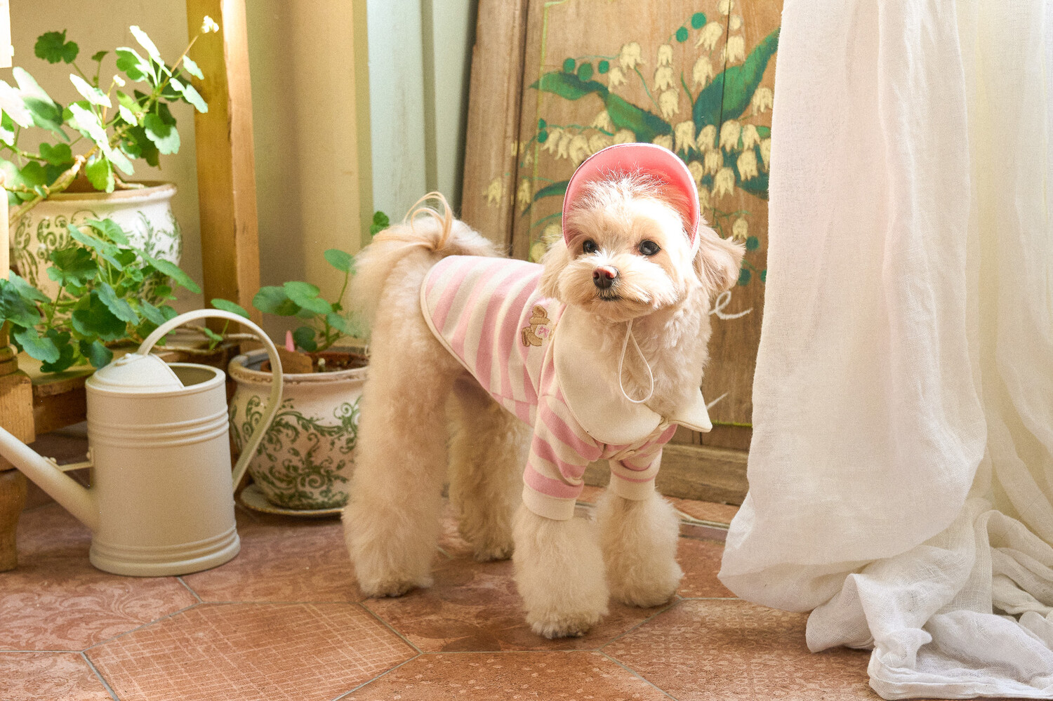 완벽한 ‘꾸안꾸’룩의 정석! 키키앤니니의 코지한 무드가 담긴, ’고미 단가라 티셔츠‘를 소개합니다 유행을 타지 않고 즐길 수 있는 스트라이프 패턴 위에, 귀여움이 마구마구 상승하는 키키앤니니 시그니처 곰돌이 자수로 포인트를 주었으며, 생크림 한 방울 떨어트린 듯 부드러운 파스텔 색감의 핑크/베이지 두 컬러로 만나보실 수 있습니다 매 시즌 휘뚜루마뚜루 꺼내 입기 좋은 데일리템인 만큼! 원단에 특히 신경을 많이 썼는데요! 적당한 두께감의 탄탄하면서 부드러운 코튼 소재로, 늘어짐 및 변형이 적어 오랫동안 높은 퀄리티로 함께하시기 좋으실 거에요♥ 패턴 또한, 단순해 보이지만, 입었을 때 가장 예쁘게 떨어지는 핏 감을 찾기 위해 여러 번의 샘플링 작업을 걸쳐 나온 패턴이라 입혀보시면 더욱 만족하실 것 같습니다! 타입은, 티셔츠&원피스 2타입으로 제작되어, 남매룩 또는 친구들과 댕플룩으로도 너무 추천드리는 제픔이며, 함께 출시된 ‘캡 모자’와 함께 하시면, 당장이라도 소풍 가야 할 것만 같은 봄 소풍룩이 완성된답니다♥