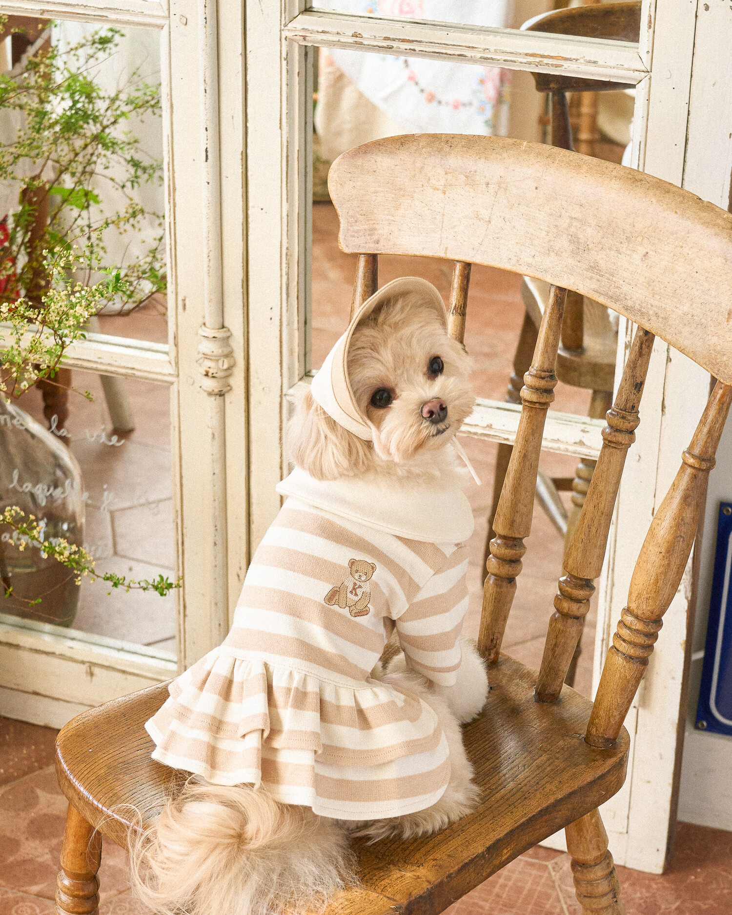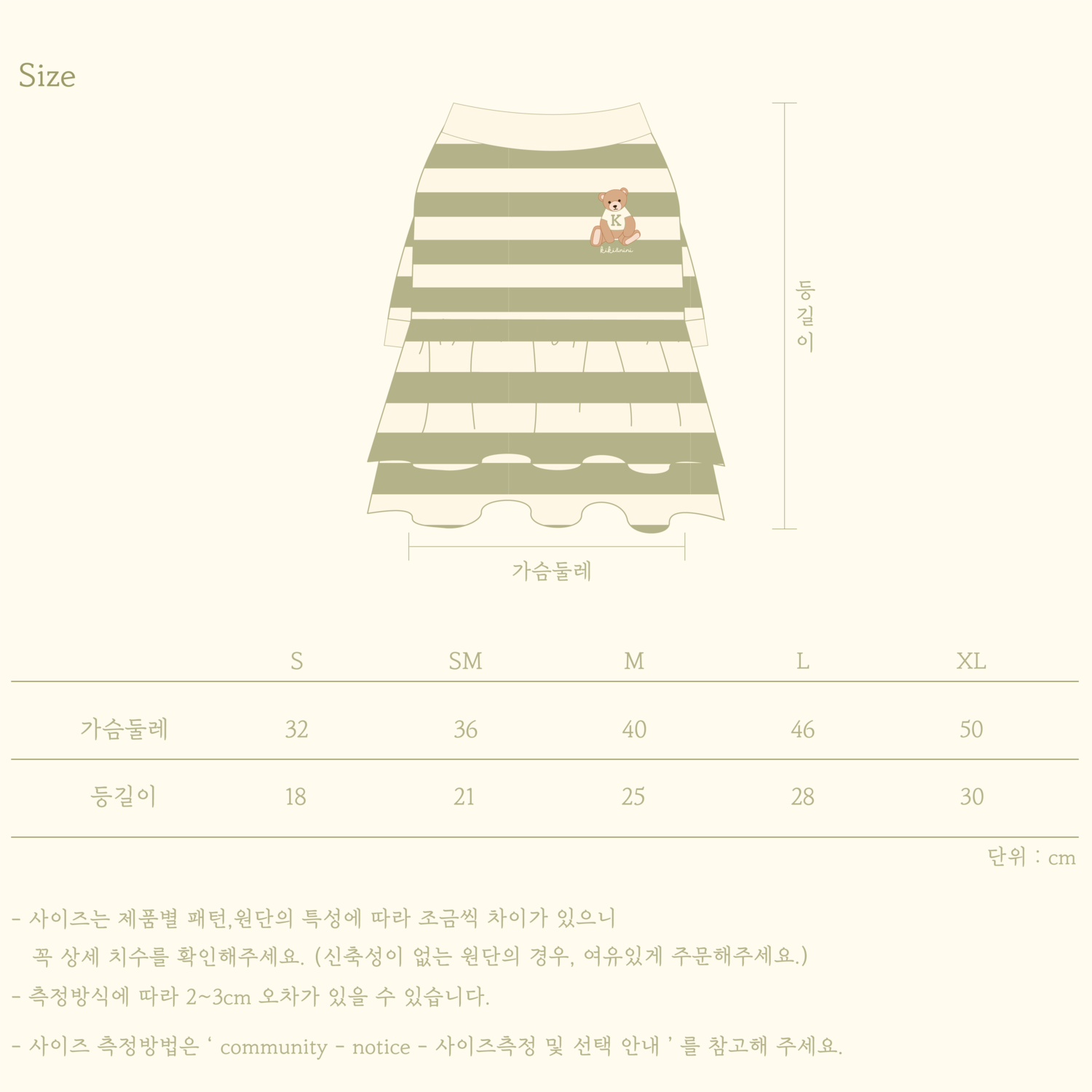 완벽한 ‘꾸안꾸’룩의 정석! 키키앤니니의 코지한 무드가 담긴, ’고미 단가라 원피스‘를 소개합니다 유행을 타지 않고 즐길 수 있는 스트라이프 패턴 위에, 귀여움이 마구마구 상승하는 키키앤니니 시그니처 곰돌이 자수로 포인트를 주었으며, 생크림 한 방울 떨어트린 듯 부드러운 파스텔 색감의 핑크/베이지 두 컬러로 만나보실 수 있습니다 매 시즌 휘뚜루마뚜루 꺼내 입기 좋은 데일리템인 만큼! 원단에 특히 신경을 많이 썼는데요! 적당한 두께감의 탄탄하면서 부드러운 코튼 소재로, 늘어짐 및 변형이 적어 오랫동안 높은 퀄리티로 함께하시기 좋으실 거에요♥ 패턴 또한, 단순해 보이지만, 입었을 때 가장 예쁘게 떨어지는 핏 감을 찾기 위해 여러 번의 샘플링 작업을 걸쳐 나온 패턴이라 입혀보시면 더욱 만족하실 것 같습니다! 타입은, 티셔츠&원피스 2타입으로 제작되어, 남매룩 또는 친구들과 댕플룩으로도 너무 추천드리는 제픔이며, 함께 출시된 ‘캡 모자’와 함께 하시면, 당장이라도 소풍 가야 할 것만 같은 봄 소풍룩이 완성된답니다♥