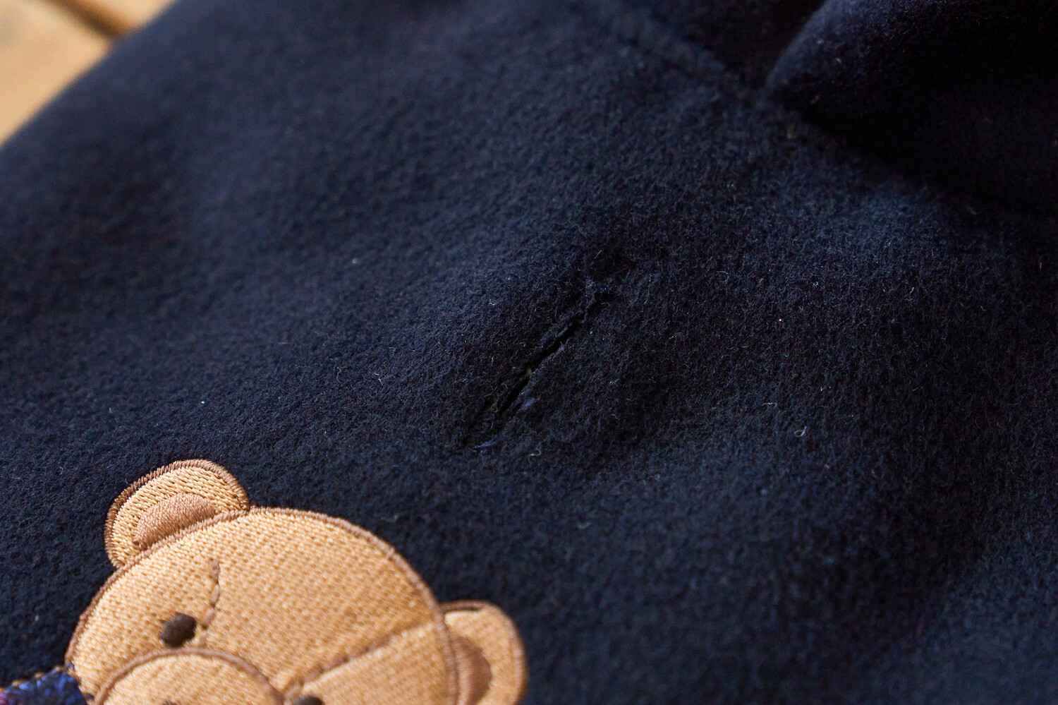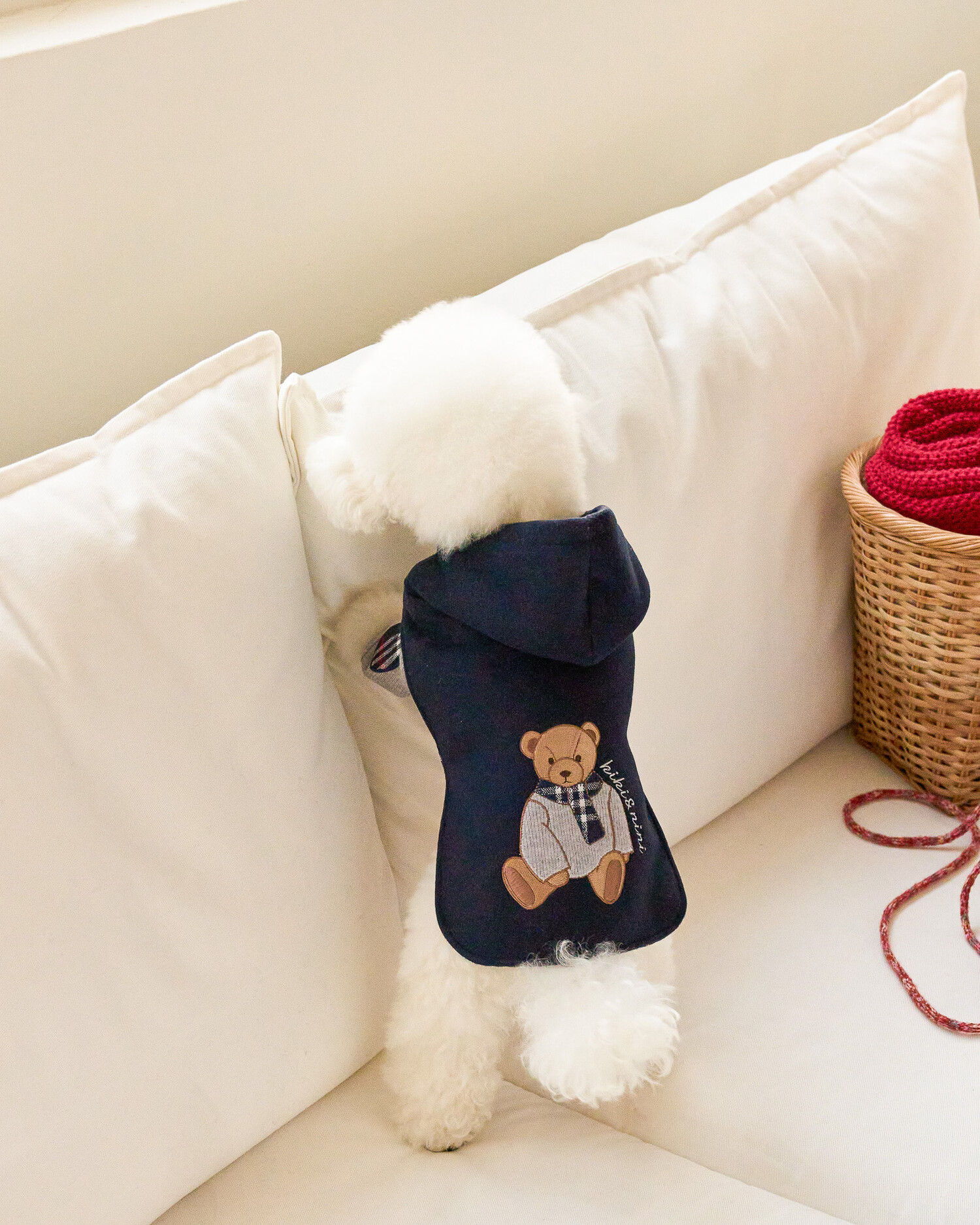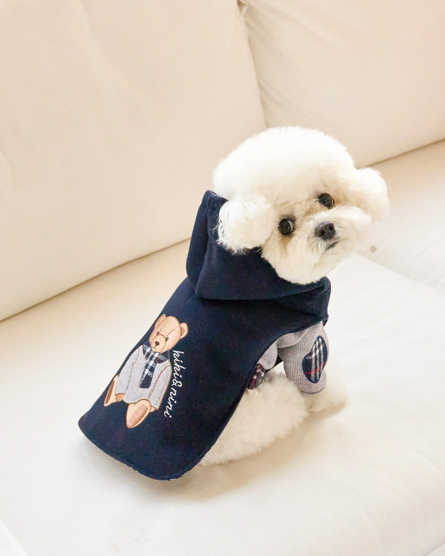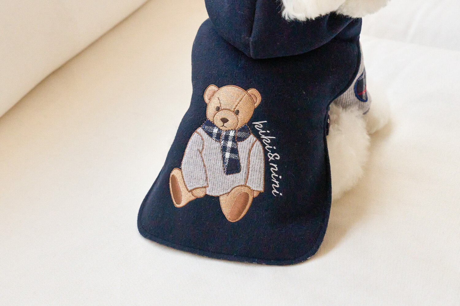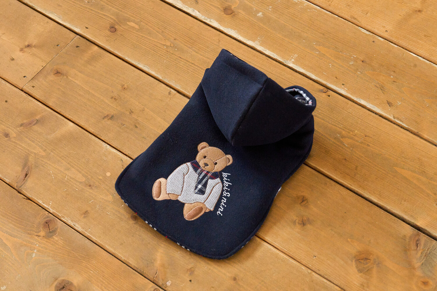 곰돌이 패치 자수와 안감에 클래식한 체크로 포인트를 주었으며,