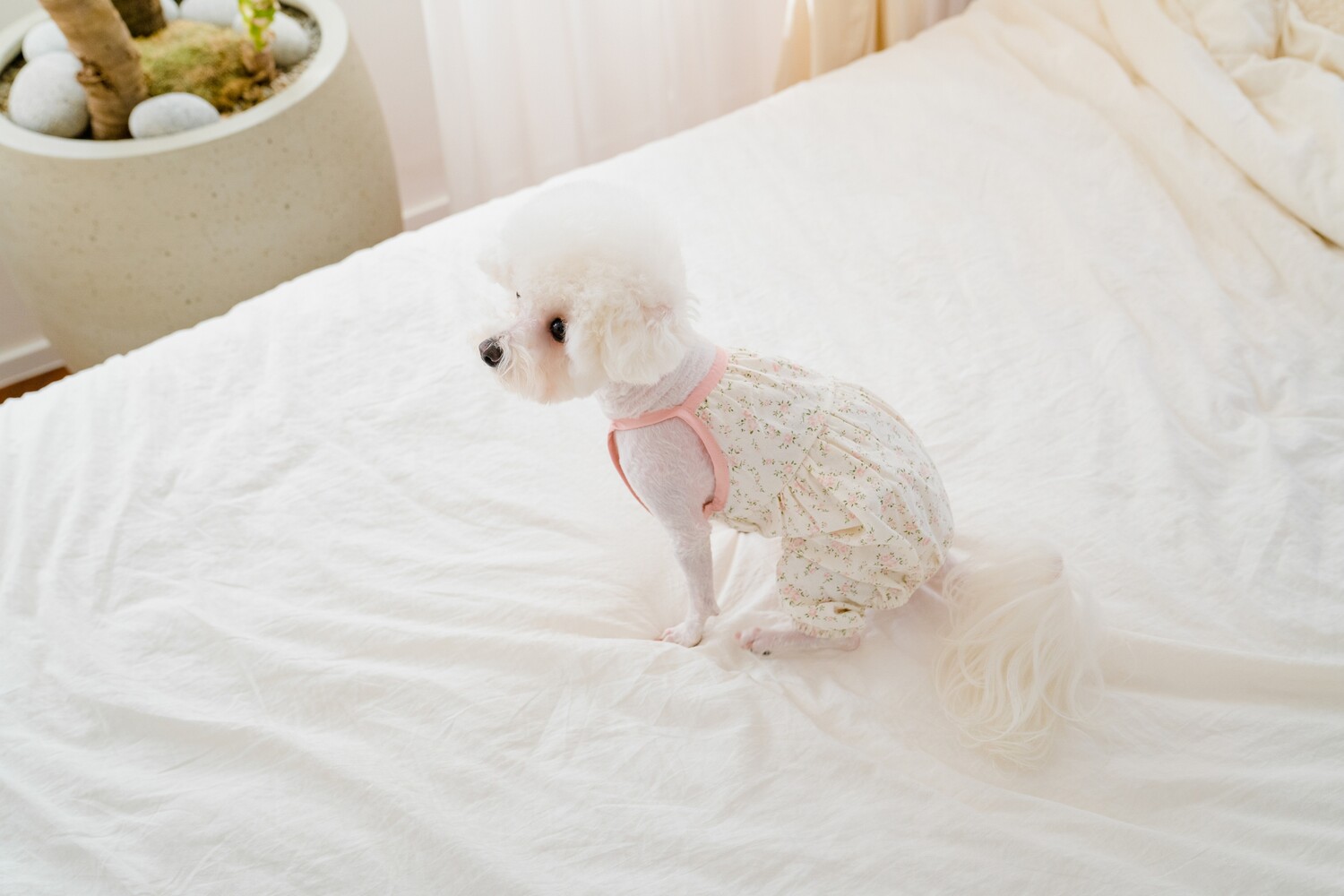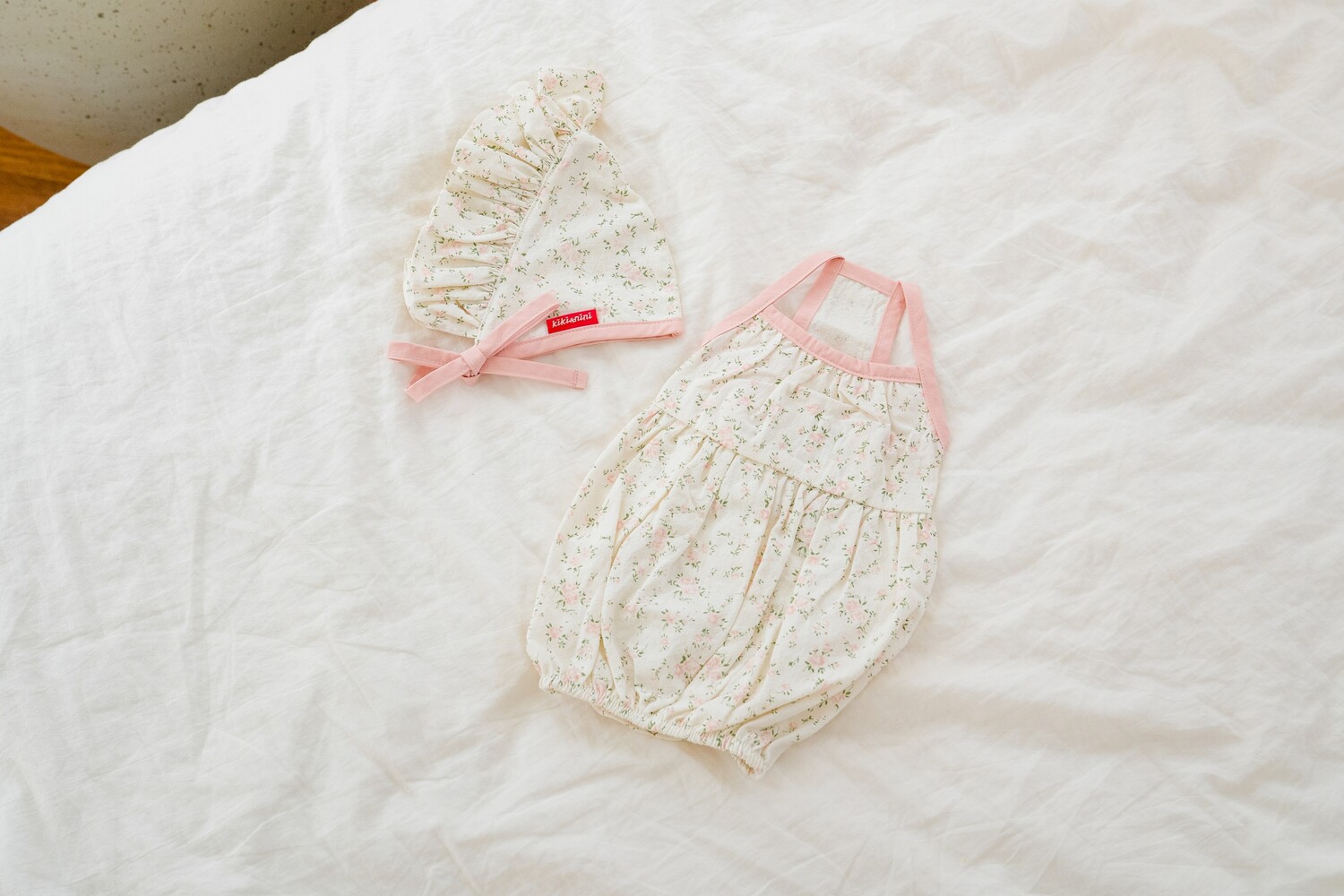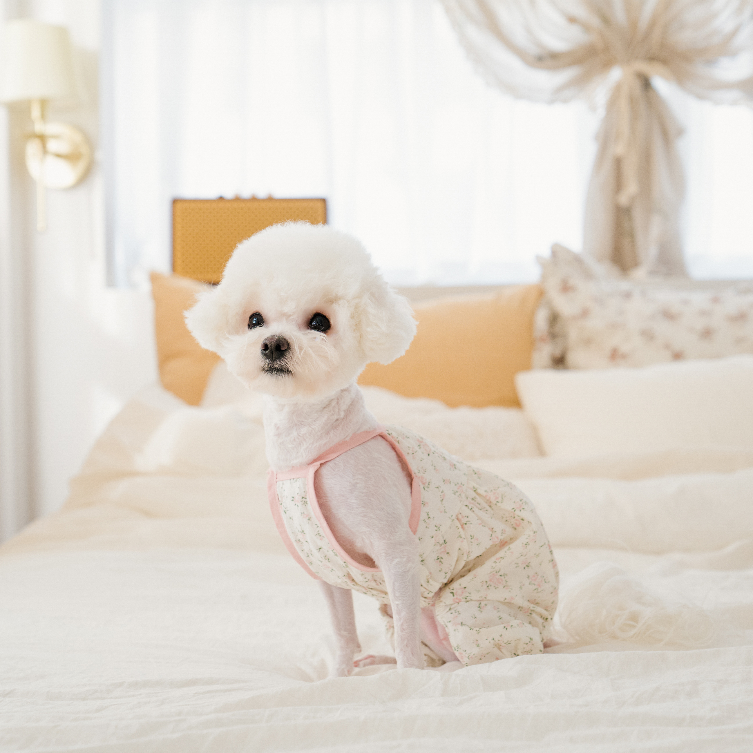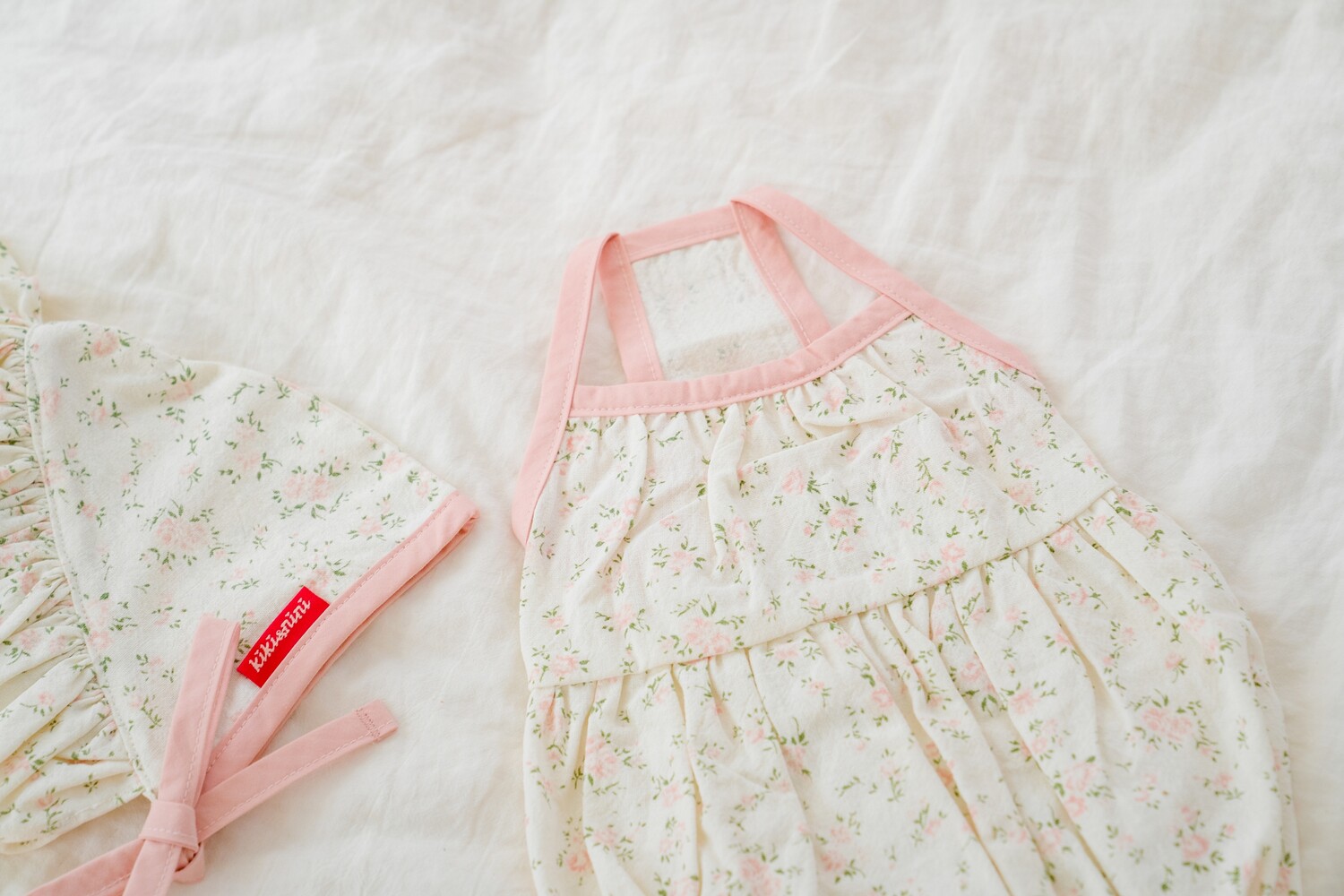 은은한 잔꽃패턴과 어깨끈의 컬러배색이 포인트이며,