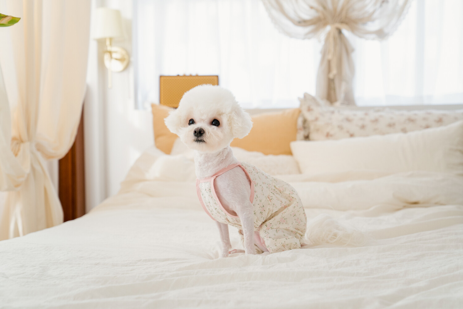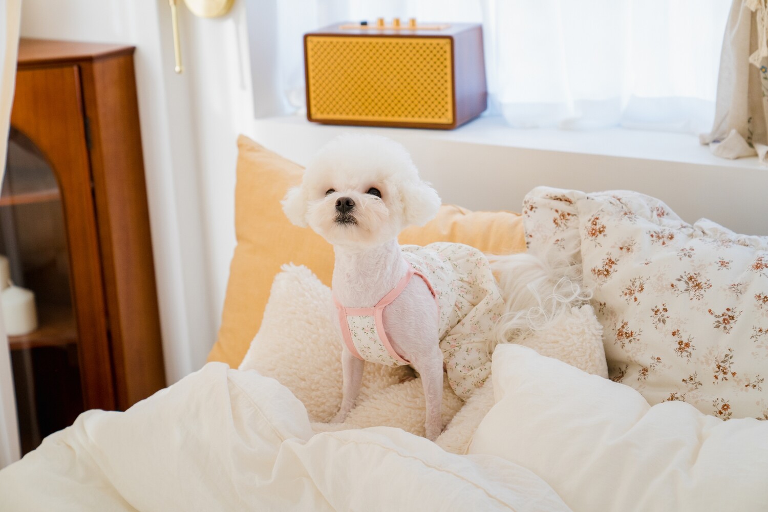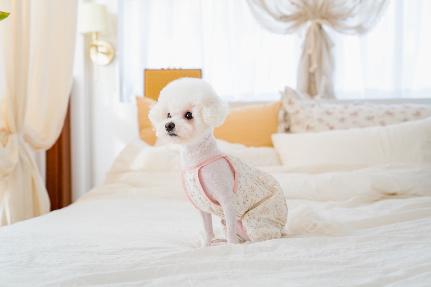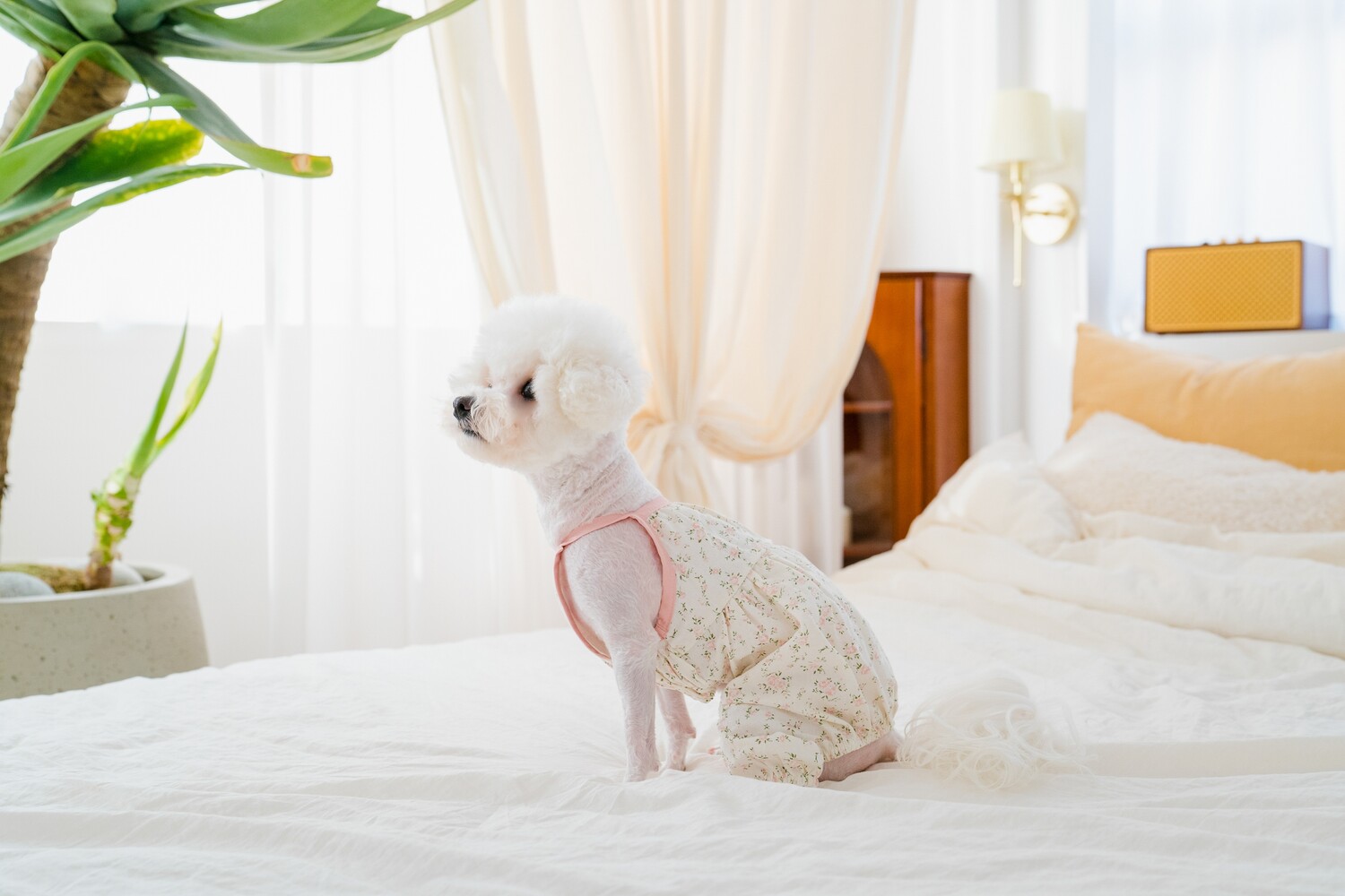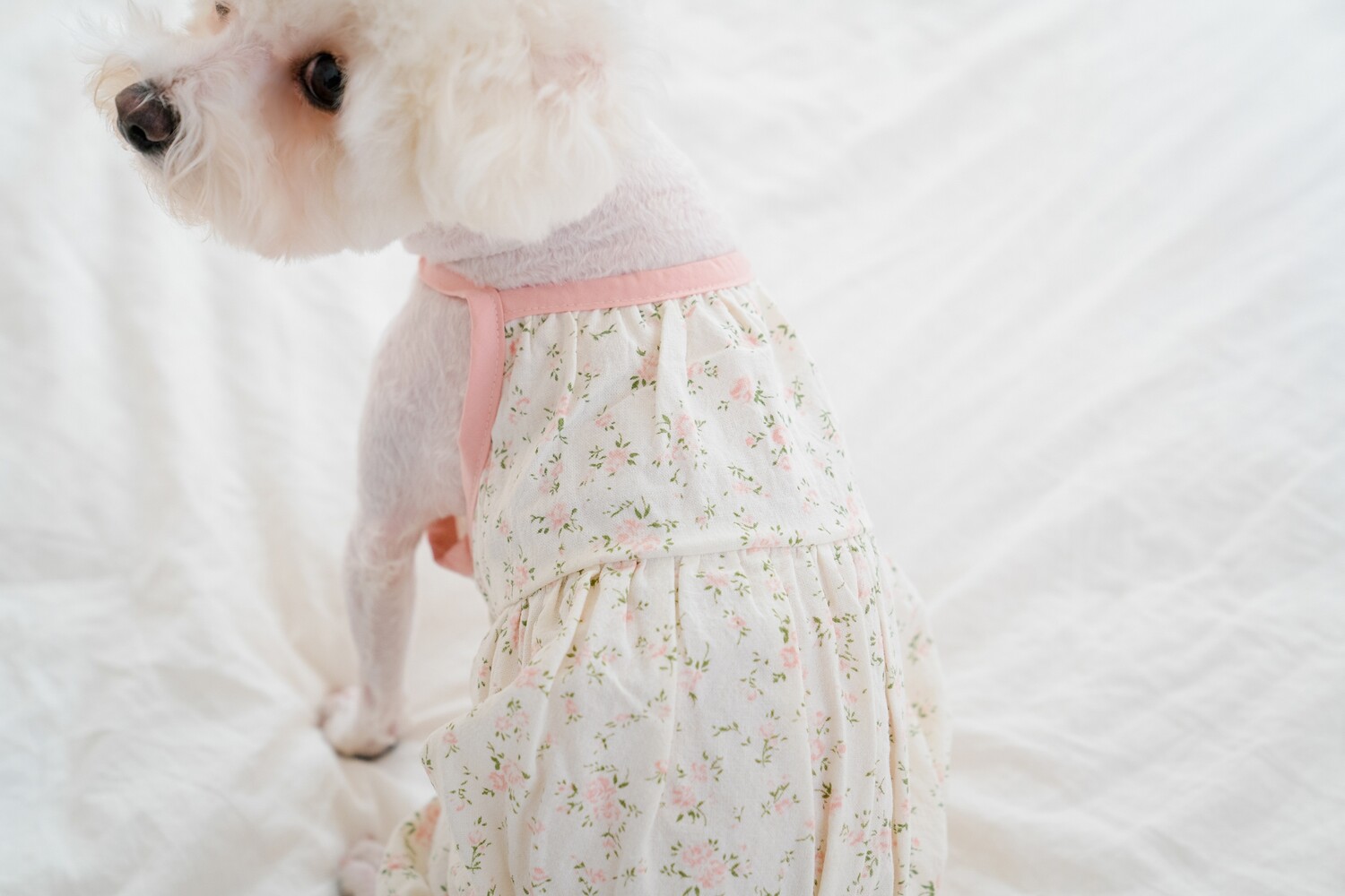 은은한 잔꽃패턴과 어깨끈의 컬러배색이 포인트이며,