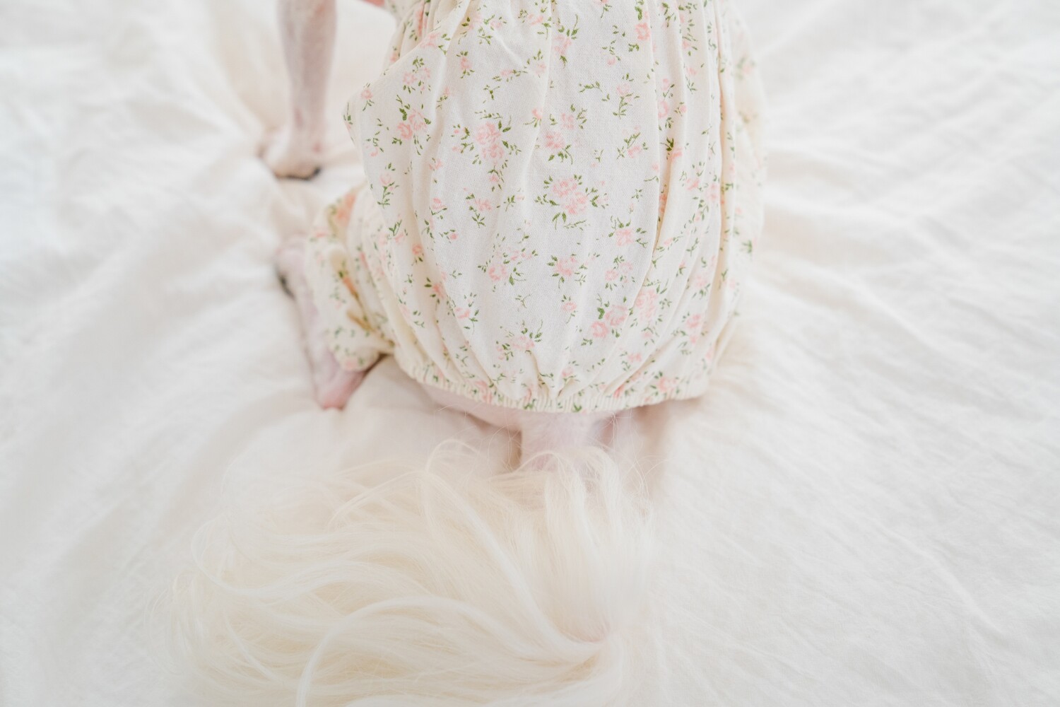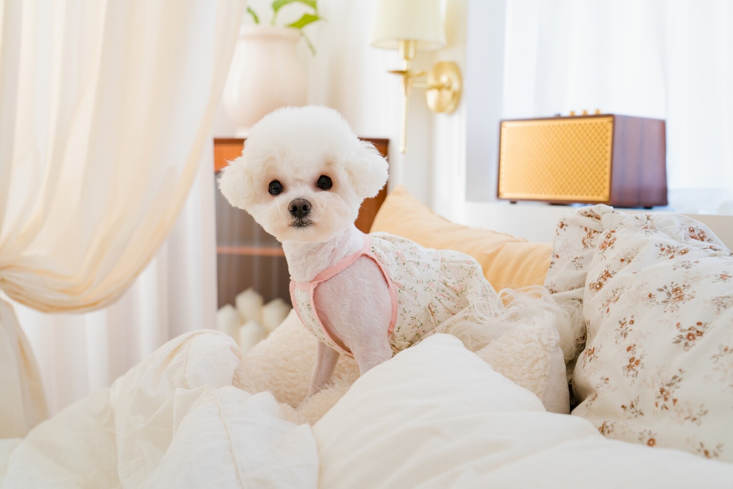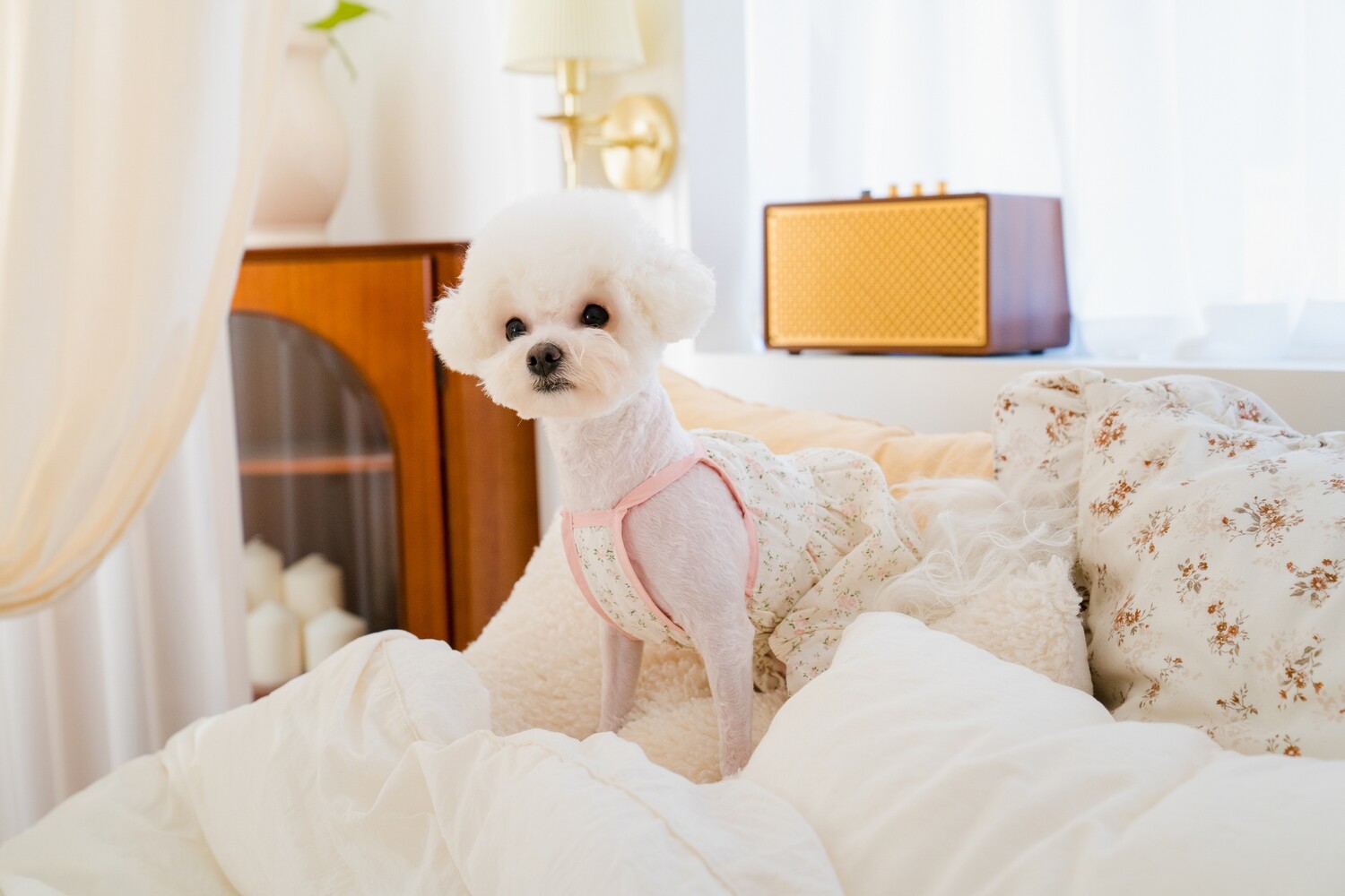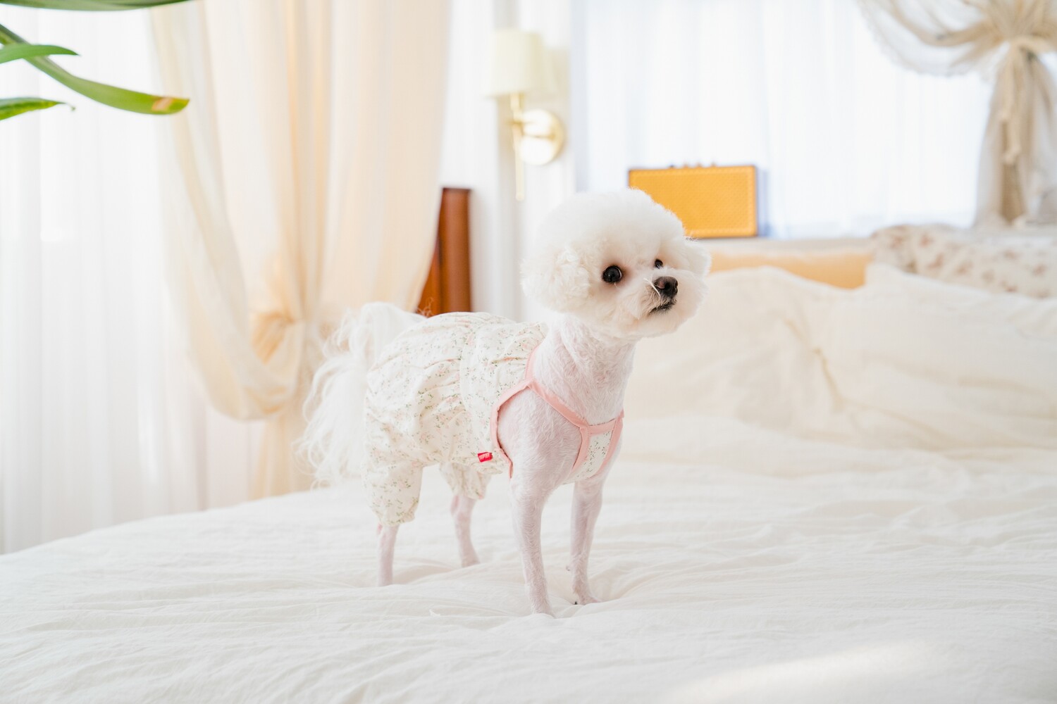 은은한 잔꽃패턴과 어깨끈의 컬러배색이 포인트이며,