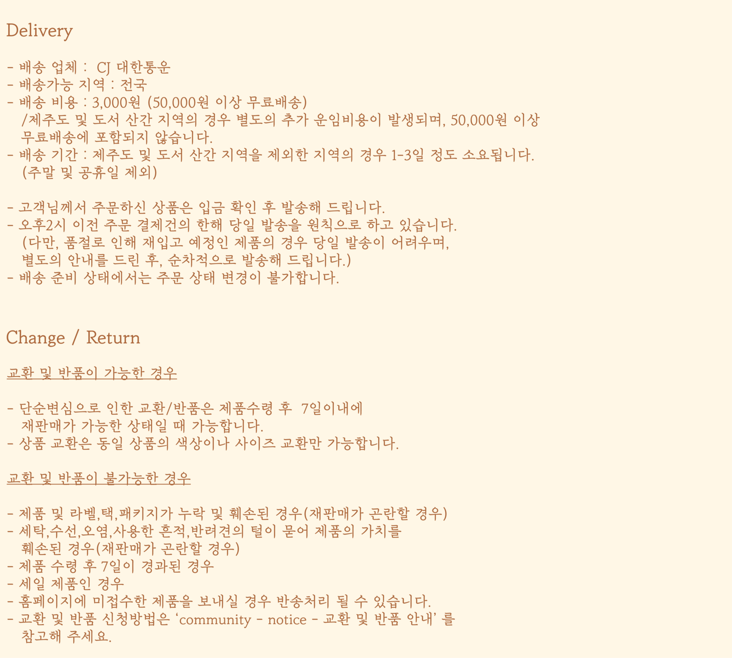 Business Registration Number: 685-08-01257 | Business License: 2021-화성동탄-2263 | Hosting by sixshop