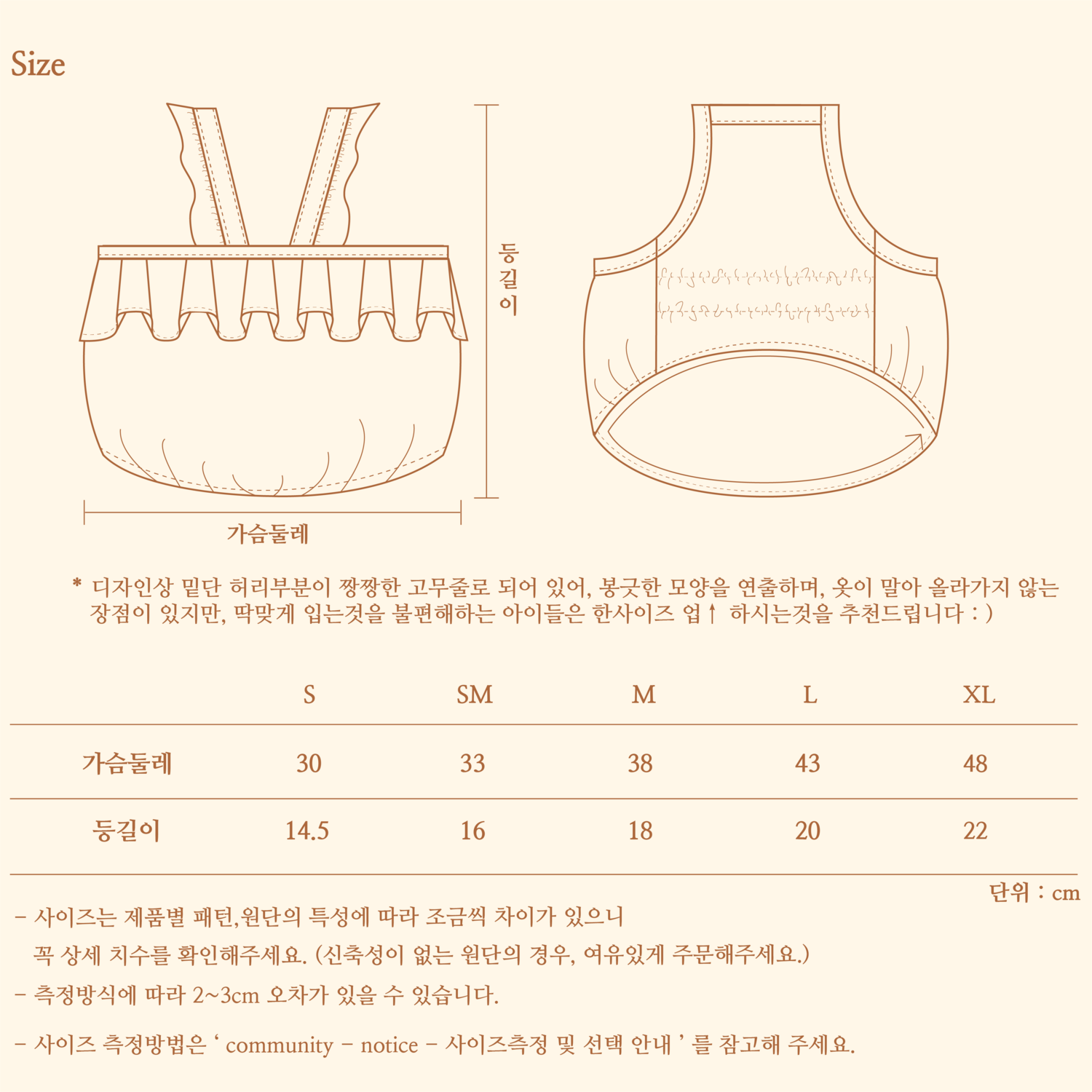 *디자인상 밑단 허리부분이 짱짱한 고무줄로 되어 있어, 봉긋한 모양을 연출하며, 옷이 말아 올라가지 않는 장점이 있지만, 딱맞게 입는것을 불편해하는 아이들은 한사이즈 업↑ 하시는것을 추천드립니다 : )